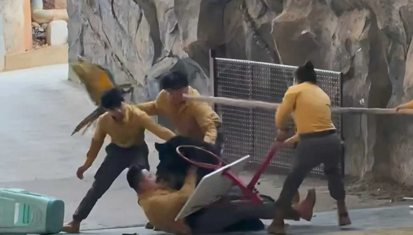 هاجم دب أسود فجأة حارساً بعد انتهاء جولة من العروض في حديقة حانغتشو سفاري بارك في مقاطعة تشجيانغ بشرقي الصين، يوم السبت. وتدخل موظفون آخرون على الفور، واستخدموا أدوات مسرحية لفصل الدب عن الحارس، فيما أثار هذا الحادث جدلًا على الإنترنت حول ما إذا كان ينبغي حظر عروض الحيوانات.
