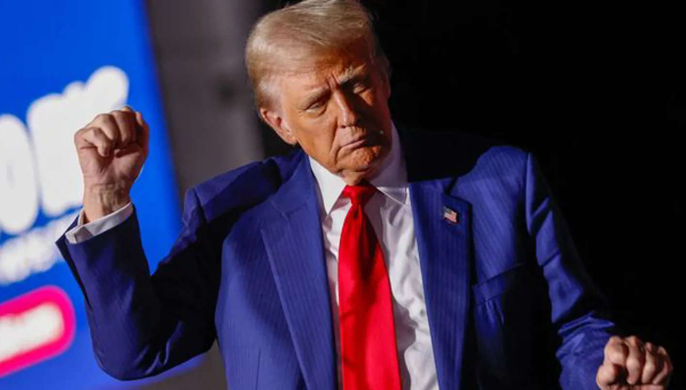 خلال حملته الانتخابية لعام 2024، اختتم ترامب أكثر من 110 تجمعات جماهيرية بأداء حركته المميّزة عند خروجه من المسرح: لكمة مزدوجة بقبضة اليد المغلقة مع اهتزاز الوركين،على أنغام أغنية Village People الشهيرة "Y.M.C.A."