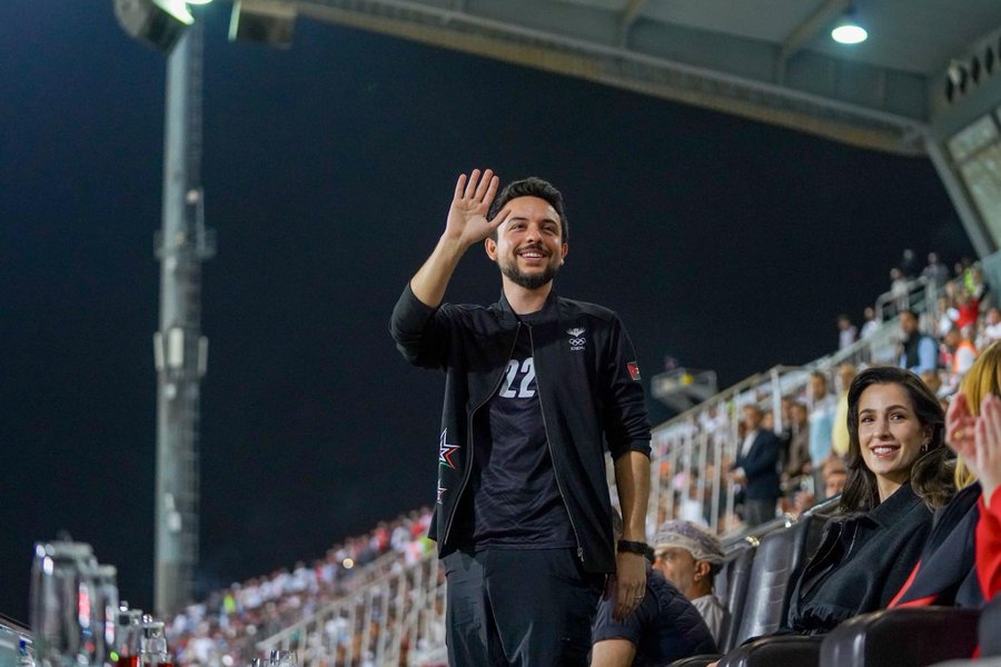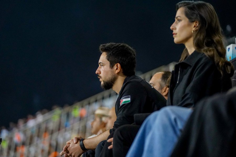 الأمير الحسين والأميرة رجوة يخطفان الأنظار في مباراة منتخب النشامى