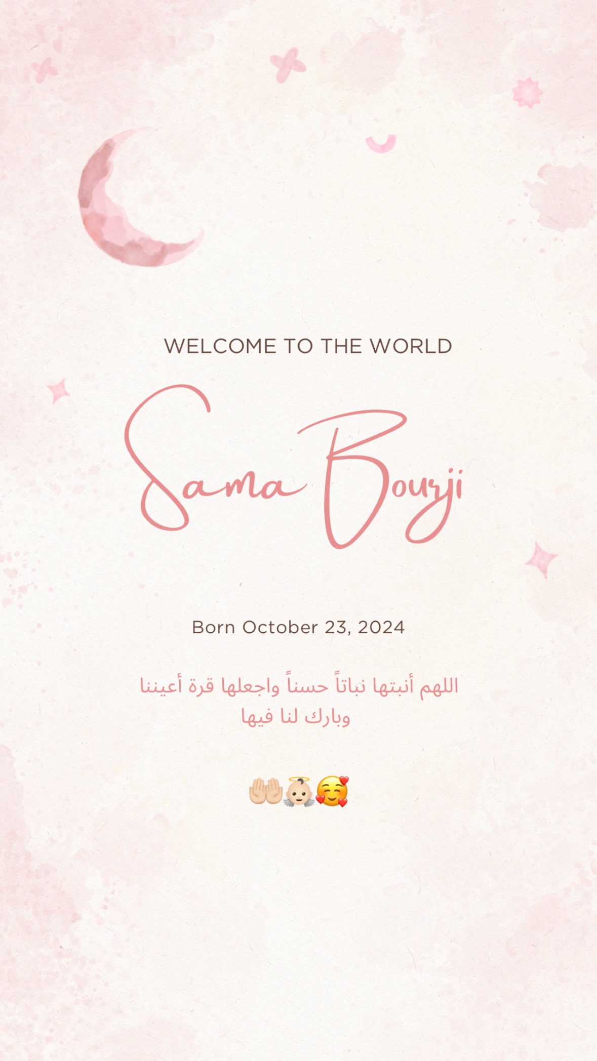 وأعلن برجي عن اسمها وهو سما، عبر خاصية القصص المصوّرة "Stories" في حسابه عبر "إنستغرام"، مشيراً إلى أنّ تاريخ الولادة حصل أمس الأربعاء (23 أكتوبر).