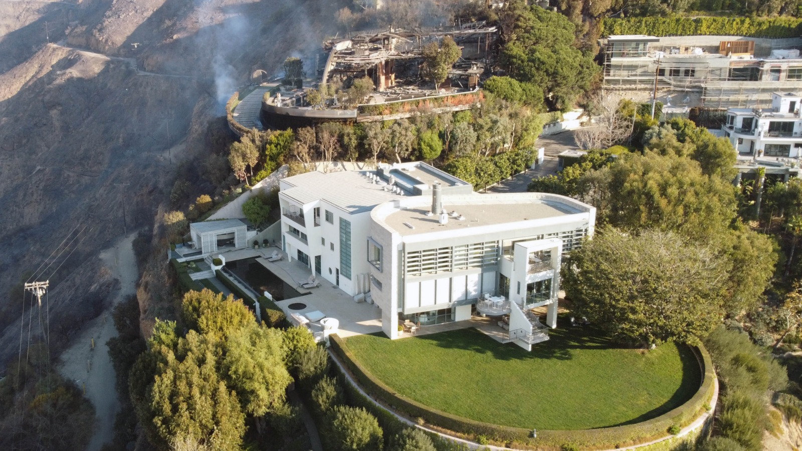 وبينما يبدو منزل هانكس المكوّن من أربع غرف نوم وخمسة حمامات سليماً، دمّر الحريق قصراً ضخماً على جرف فوق منزله مباشرة.
