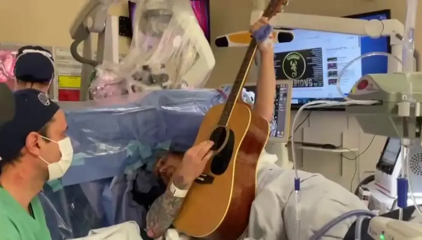 خضع أب لخمسة أطفال لجراحة دقيقة في الدماغ وهو مستيقظ، إذ أزال الأطباء ورماً "بحجم حبة الكيوي"، بينما كان يعزف على الغيتار في خلال الجراحة.