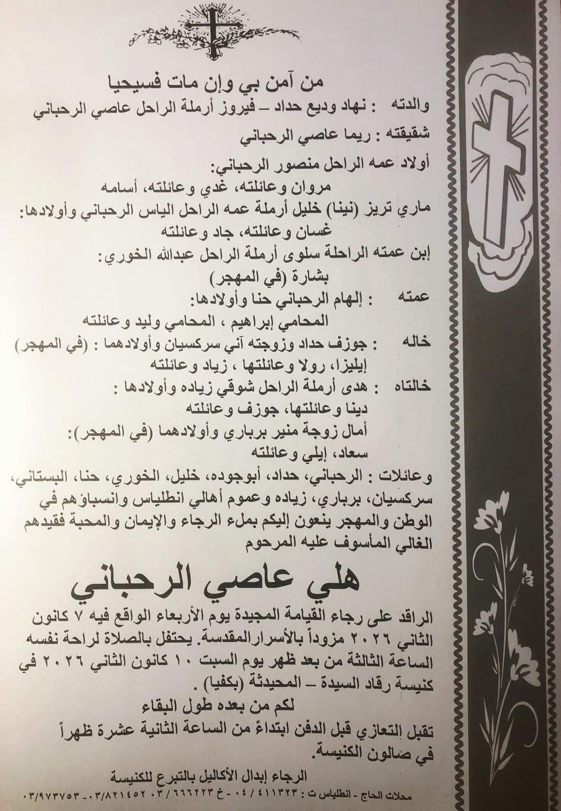 وكتب مرقص في حسابه عبر "إكس": "أتقدّم بأحرّ التعازي من السيدة فيروز برحيل نجلها هلي الرحباني، بعد أشهر على فقدان الموسيقار زياد الرحباني".