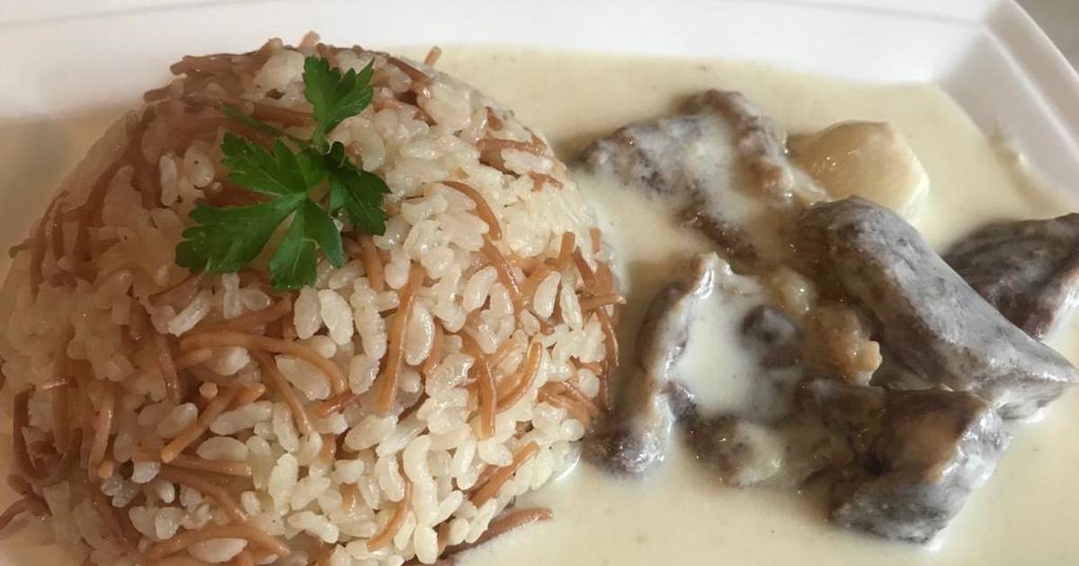 نقدم اللبن باللحم إلى جانب أرز بشعيرية.