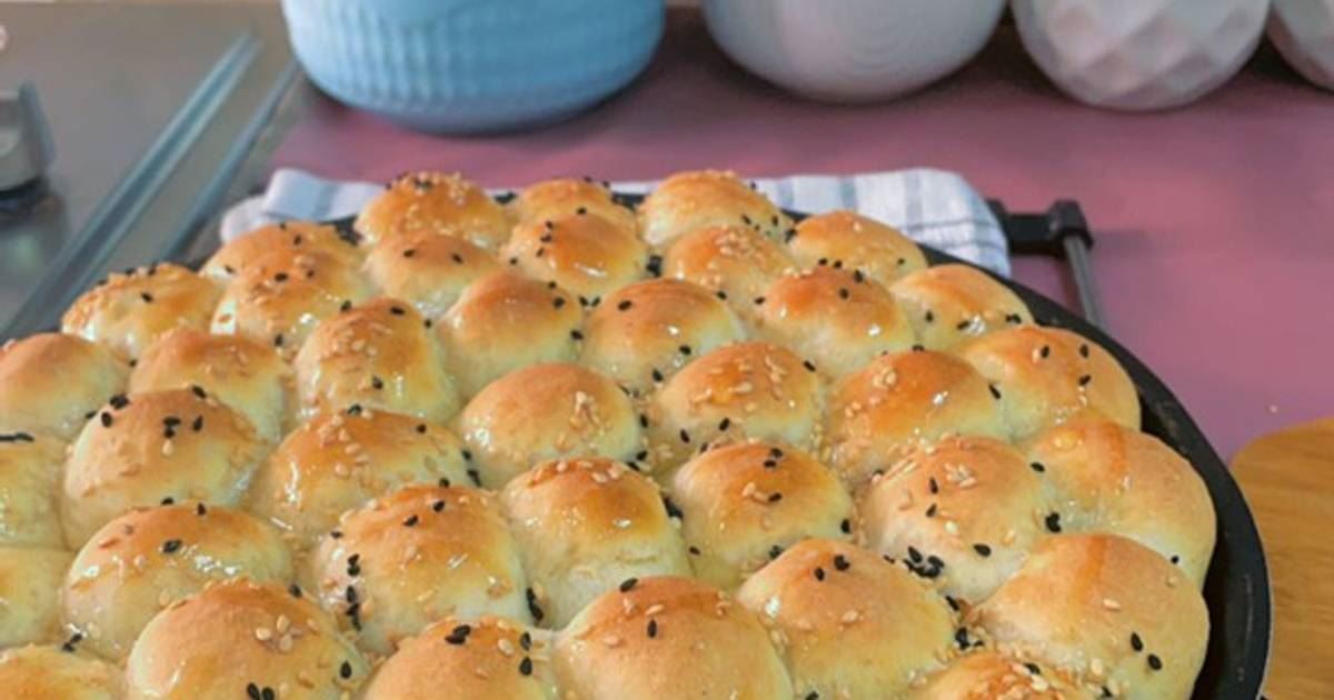 - تُقسم إلى كرات بحجم صغير وتُحشى بالجبن الممزوج بالفستق وماء الزهر، وتُرص في الصينية بجانب بعضها ويدهن سطحها بصفار البيض وتُرش بالسمسم وحبة البركة، وتُترك لتخمر مدة ربع ساعة.