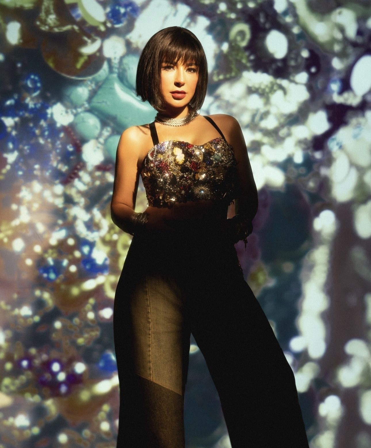 في إطلالة سابقة، أيضاً بعدسة لارا زنكول، تأنّقت ماغي بو غصن ب "توب" قصيرة جداً مصمّمة خصّيصاً لها، وهي مميّزة بالتطريز اليدوي المبهر الذي تمّ تنميقه بالترتر والخرز وأحجار كبيرة من الكريستال الملوّن من المصمّم اللبناني جورج سعادة. وقد ارتدت ماغي ال "توب" مع سروالٍ من الدنيم الأزرق، وتزيّنت بحلي اختيرت لها من Emergency Room.