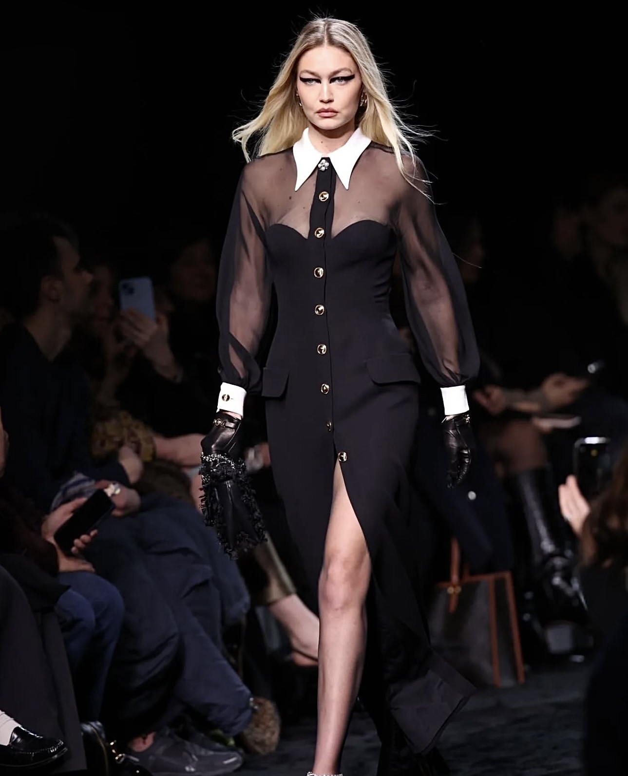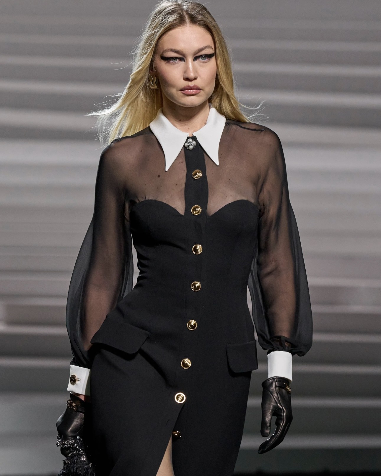 جيجي حديد في عرض فرساتشي