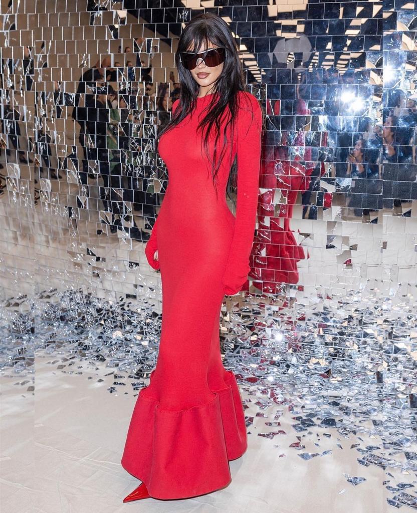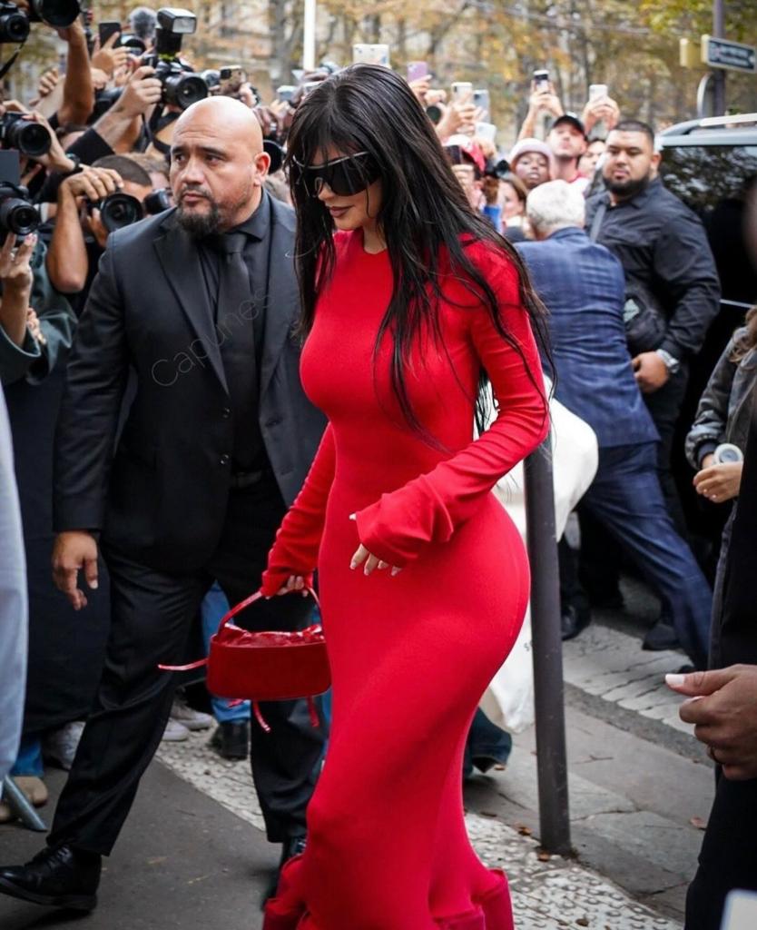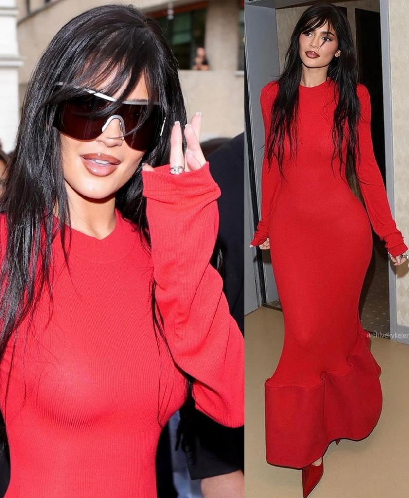 بدت كايلي فاتنة باللون الأحمر عند حضورها عرض أزياء علامة Acne Studios في باريس، حيث تألّقت بإطلالة كاملة من العلامة المذكورة، شملت فستاناً محبوكاً بقصّة طويلة تعانق الجسم بتفصيل كشكش عريضٍ من الأسفل، وكُمّيْن طويليْن يغطيان يديْها، كما انتعلت مضخّة مدبّبة من الجلد الأحمر اللمّاع، وحملت حقيبة يد من لون فستانها، ووضعت نظارات شمسيّة داكنة ذات إطارٍ فضّي.
