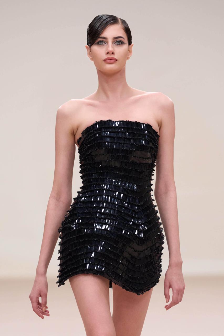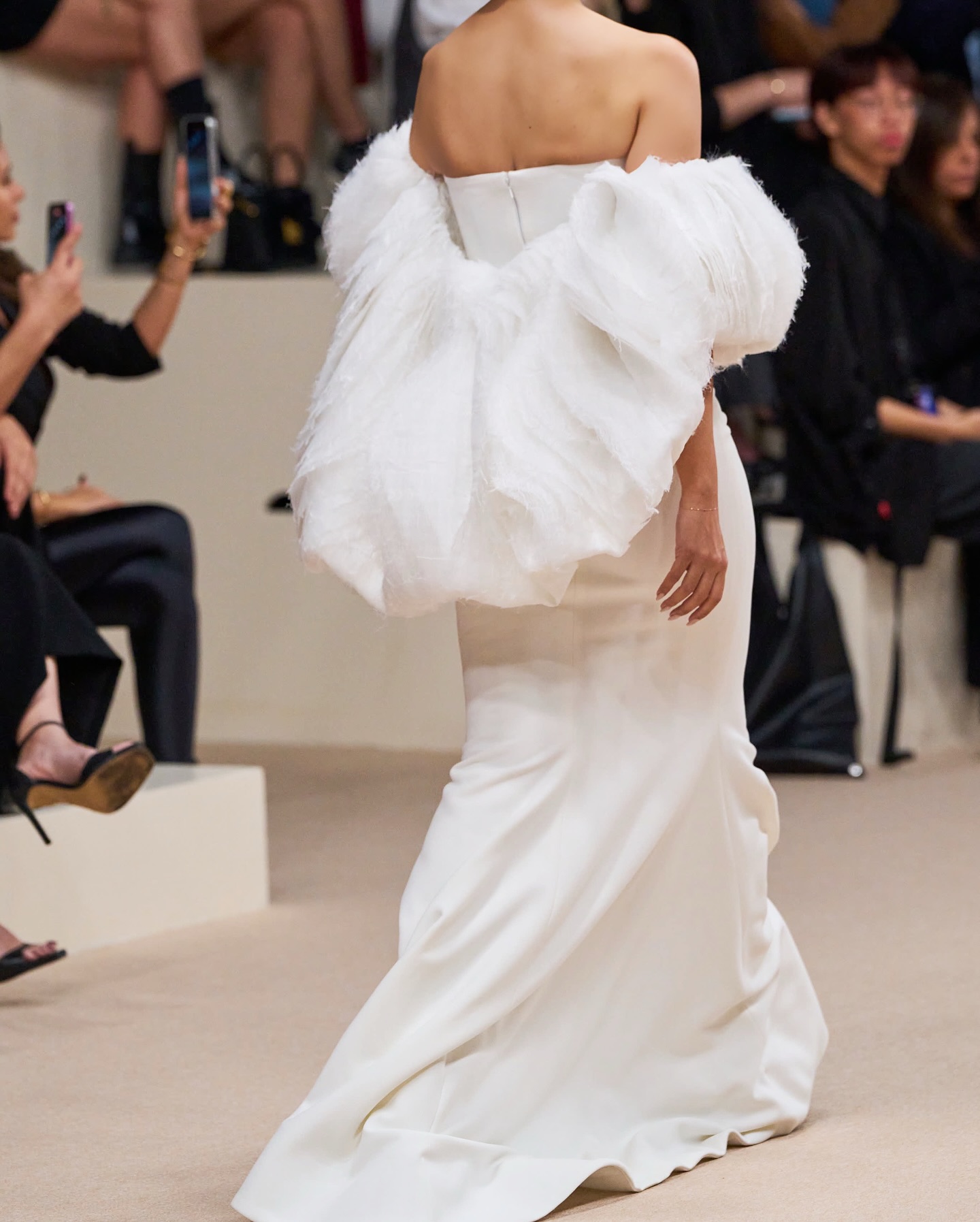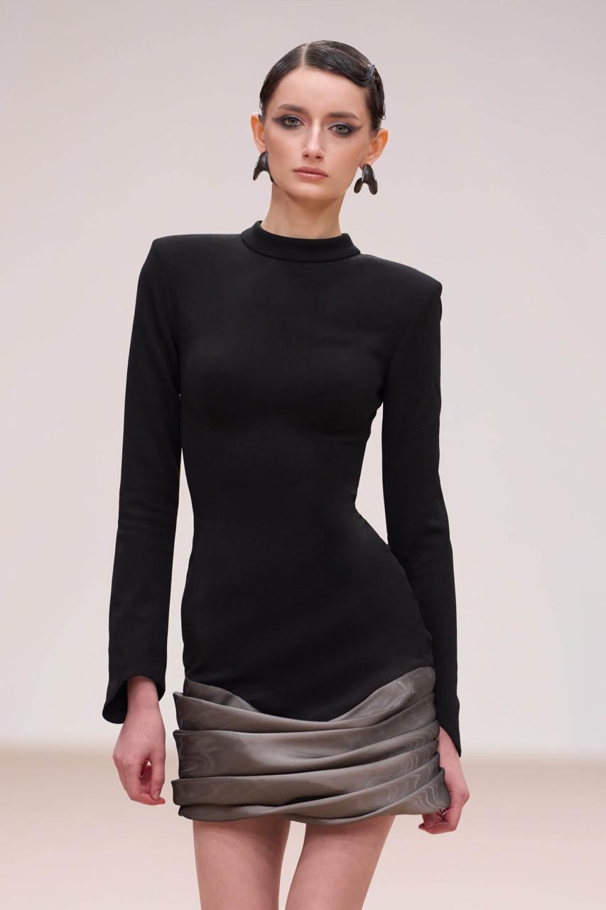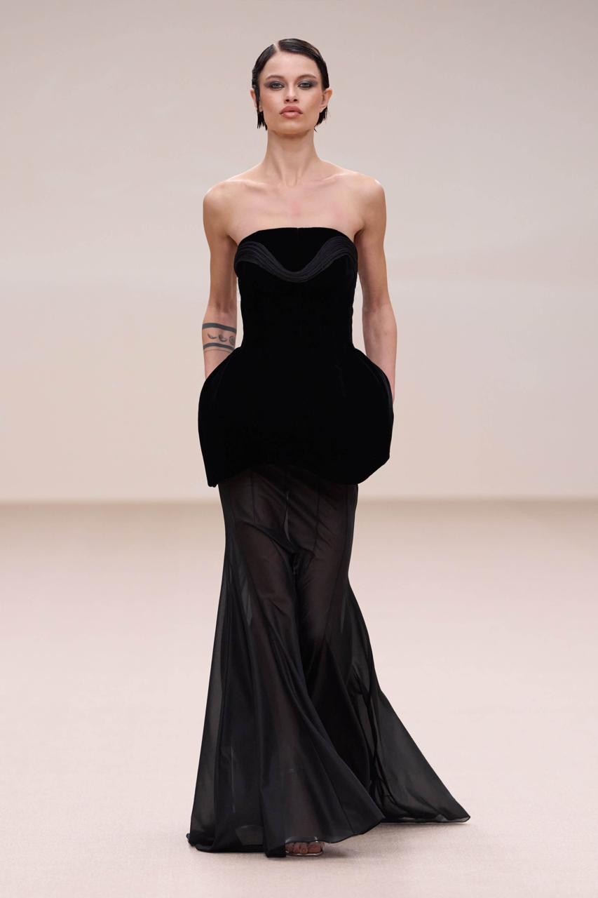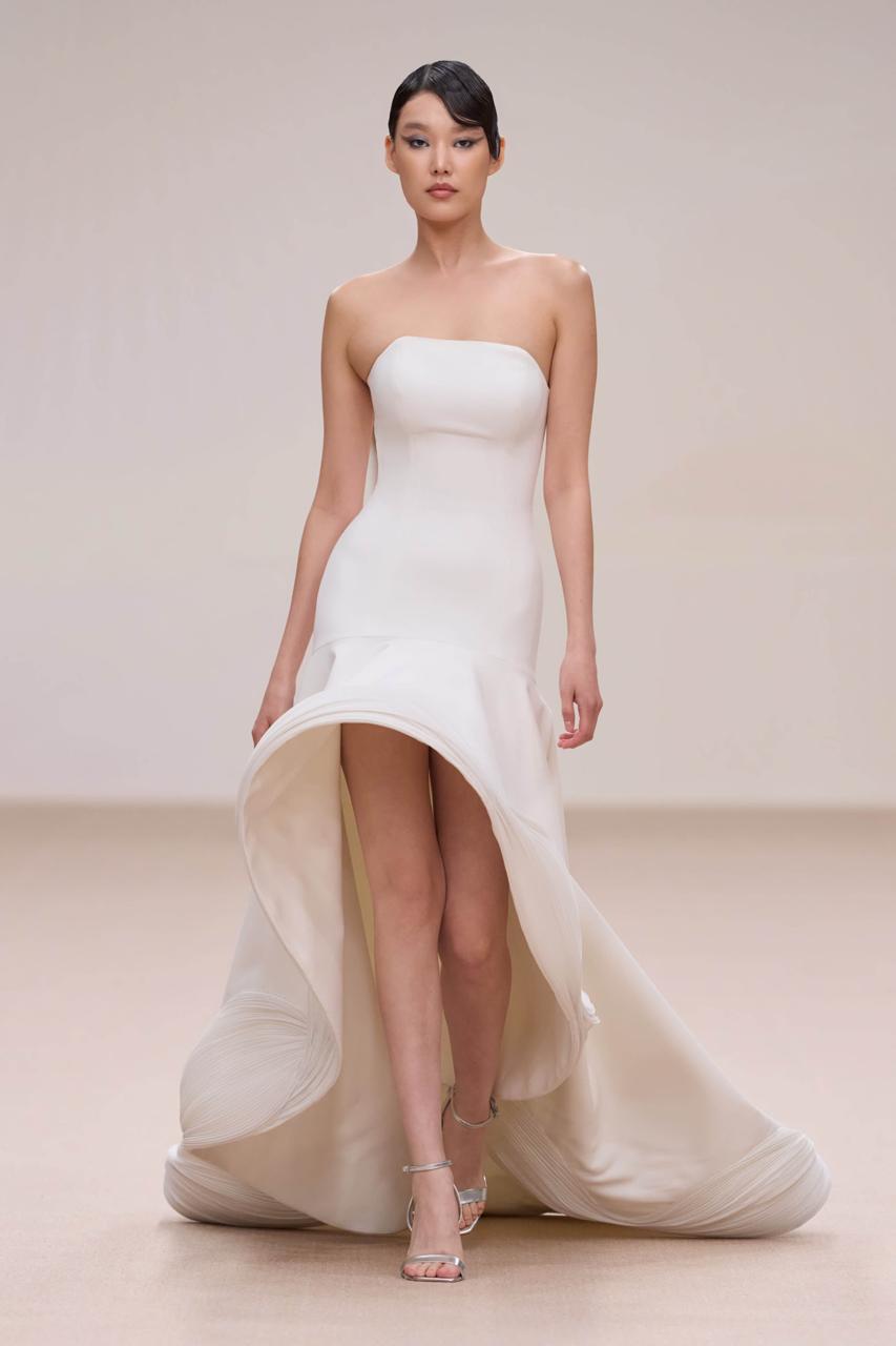 لخلق توازن ما بين القوة والنعومة، اختارت الدار مجموعة أقمشة مترفة مثل السكوبا، الشيفون، التافتا، الأورغانزا، والمخمل، ممّا يمنح التصاميم بعدًا فنيًا ينبض بالحياة. أما لوحة الألوان، فجاءت متناغمة مع الجمال الهندسيّ للمبنى الشهير، حيث تتألق المجموعة بدرجات الأبيض، الأسود، الرمادي، والفضي، التي تبرز تفاصيل كل قطعة بأسلوب راقٍ وأنيق.