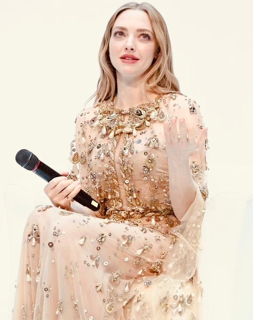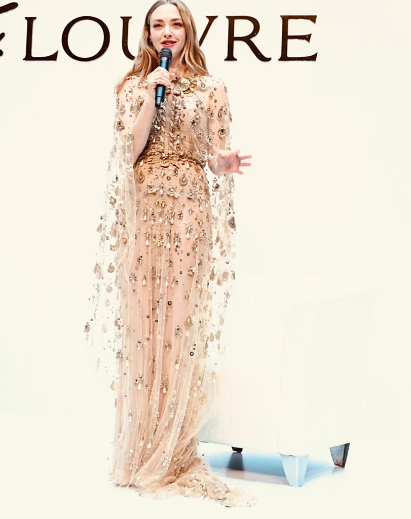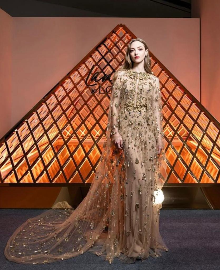 وعلى مدار عام كامل، تأنّقت جميلات الشهرة حول العالم بأجمل إبداعات إيلي صعب، اخترنا من بينها 12 نسبة لعدد أشهر السنة، نبدأ من أحدث إطلالة من بينهن تألّقت بها الممثّلة والمغنية أماندا سيفريد، سفيرة "لانكوم" إلى العالم، في الحفل أقامته الشركة منذ بضعة أيّام في شانغهاي، وهو فستان طويل من مجموعة الخياطة الراقية لخريف وشتاء 2023 من الشيفون بنمط Cape Dress بلون حيادي مطرّز بالكامل بالترتر والخرز الذهبي، واللآلئ الكبيرة على شكل دموع، وانتعلت سيفريد كندرة بلون فستانها من علامة Stuart Weitzman.