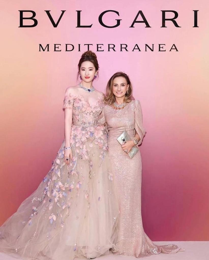 وفي منتصف هذا الشهر، بدت الممثلة والمغنية الصينيّة-الأميركيّة ليو يي فاي Liu Yifei في حفل العشاء السّاهر الذي أقامته BVLGARI أيضاً في شانغهاي، كأميرة من القصص الخرافيّة بتصميم إيلي صعب المبهر، وهو فستان من مجموعة الخياطة الراقية لخريف وشتاء 2023، مميّز بقصّة منفوخة ومكشوفة الكتفيْن مطرّز بالأزهار الورديّة والبنفسجيّة بتوليفة جمعت بين الريش بلون وردي زاهٍ، إضافة إلى الخرز والترتر والكريستال. كما تزيّنت ليو بمجوهرات رائعة من الماس والجمشت من BVLGARI.