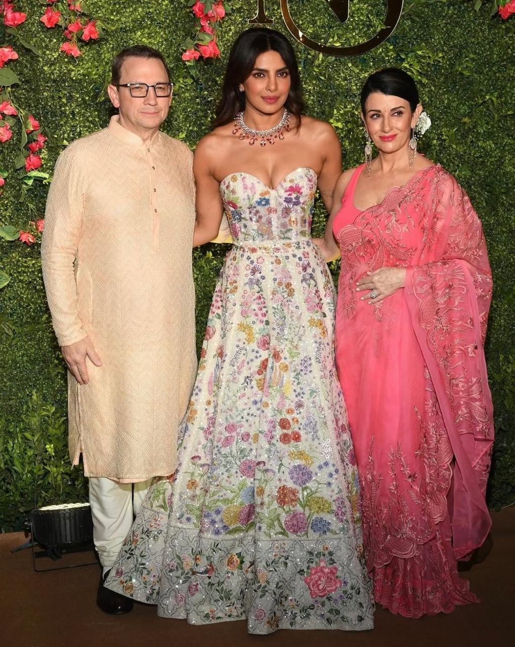 حضرت بريانكا شوبرا مناسبة عائلية سبقت حفل زفاف أخيها سيدارت، حيث بدت فاتنة بفستانٍ من مجموعة الخياطة الراقية للمصمّم الهندي المبدع "راهول ميشرا" (Rahul Mishra).
