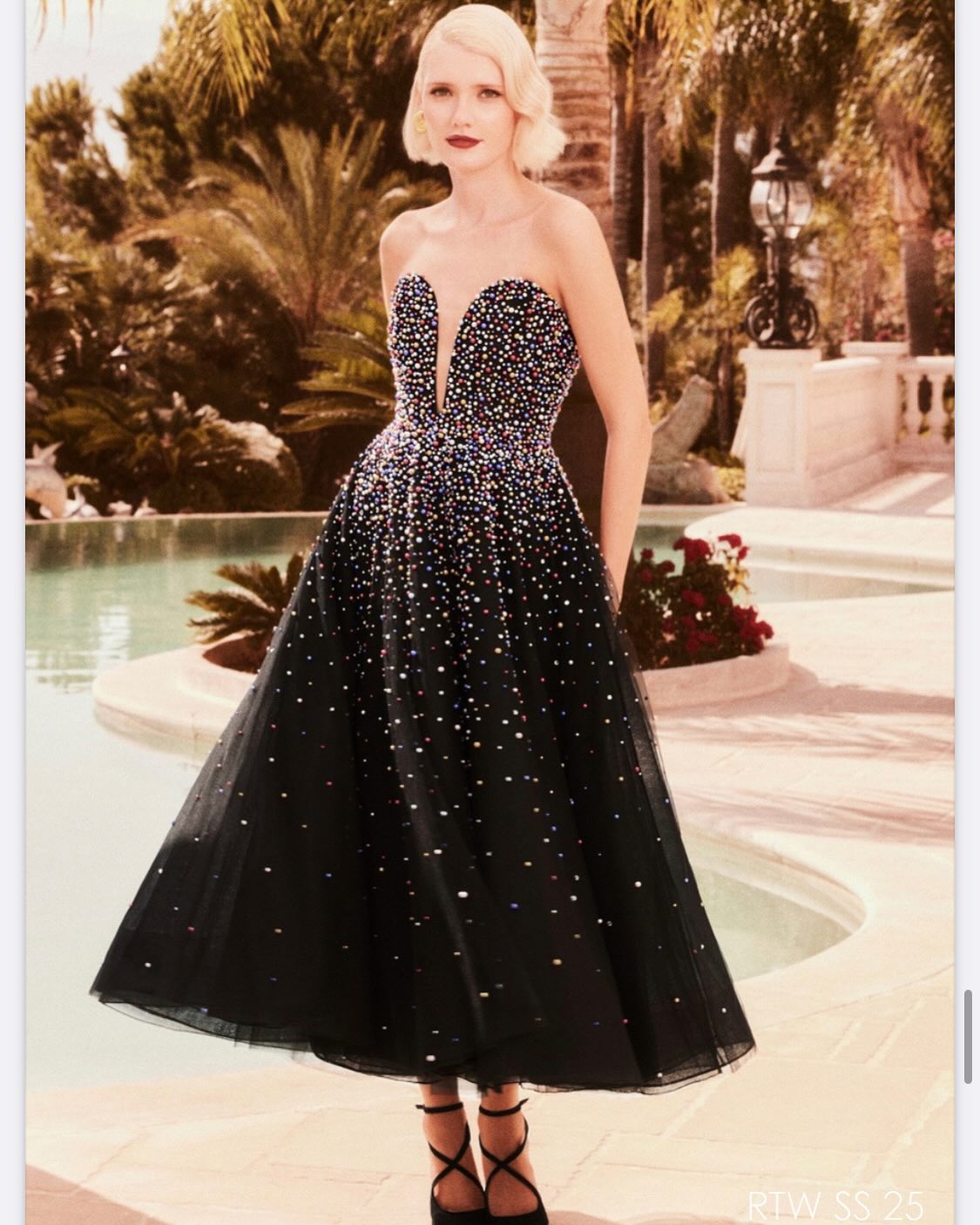 سيلينا غوميز كانت في غاية الأناقة بفستان أسود بتفصيل شقّ طويل يكشف ساقها اليسرى، صُمّم لها من دار "سيلين" (Celine)، وتميّز بقصّة طويلة ضيّقة، مكشوفة الكتفين، ومنحوتة الخصر. تزيّنت النجمة اللاتينية بمجوهرات من البلاتين المرصّع بالألماس.