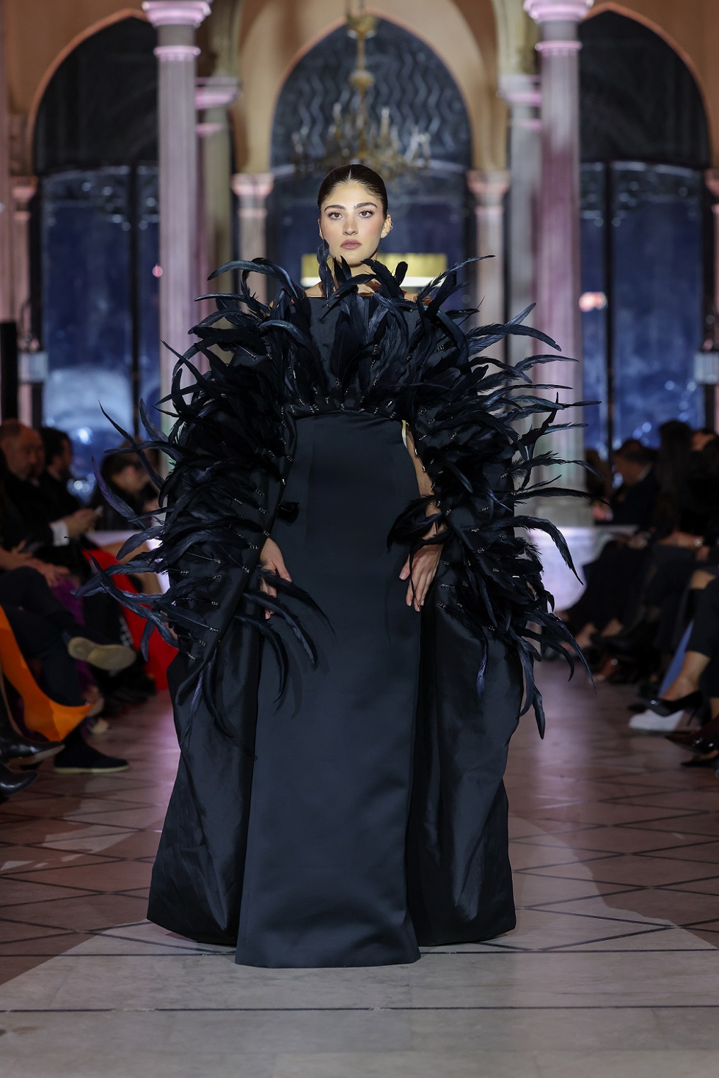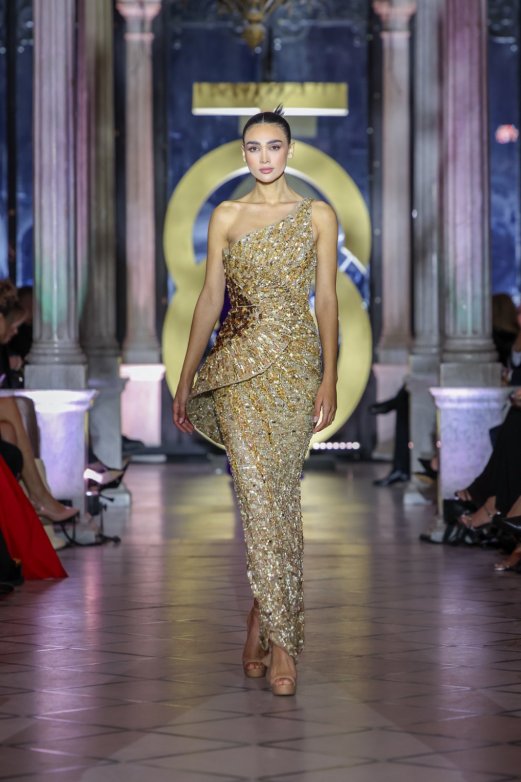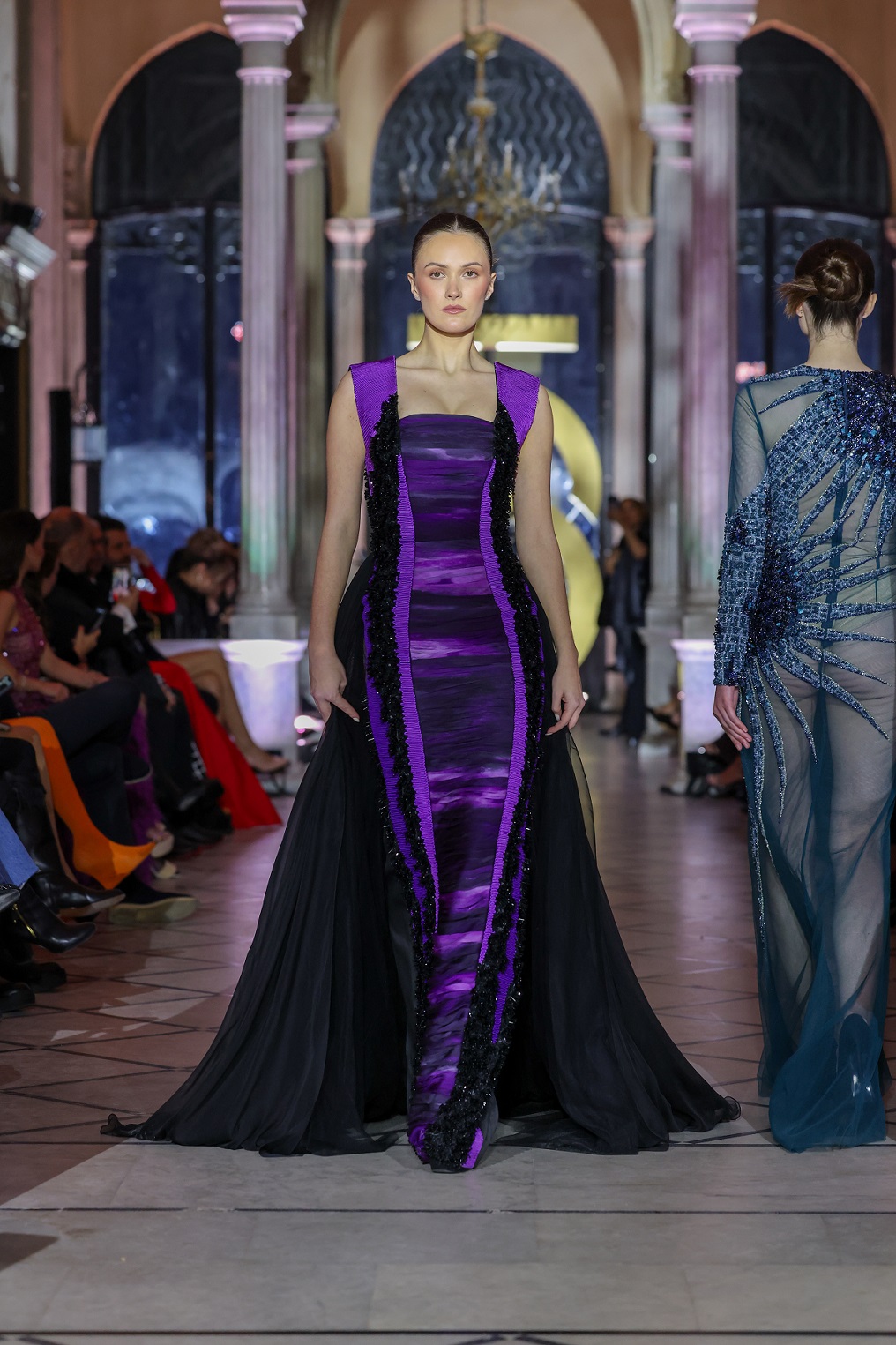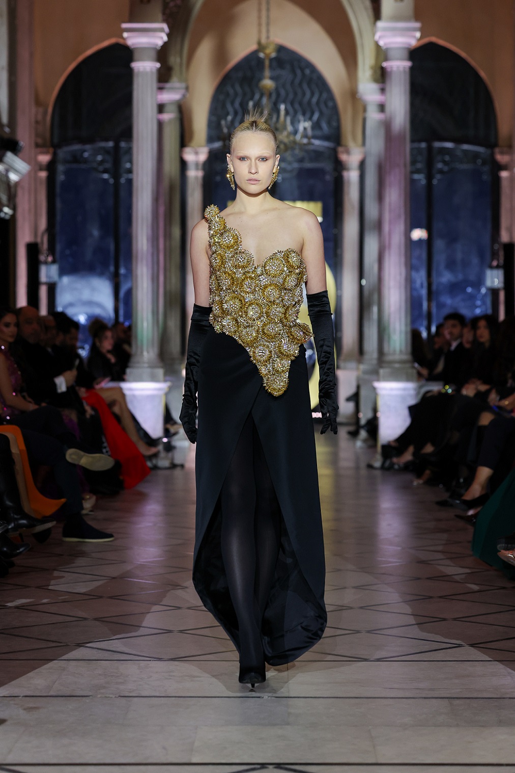 عكست تصاميم المجموعة تناغماً أخاذاً بين التقاليد الفاخرة والحداثة الجريئة، بحيث تألقت الفساتين بتطريزات الباروك الملكية، وزُيّنت بـ83 حجراً ماسياً عيار 1.5 قيراط، بلغت قيمتها نصف مليون دولار، بينما برز الـ"كورسيه" الذهبي المرصّع بالألماس قطعة استثنائية توّجت إبداع المصمّم.