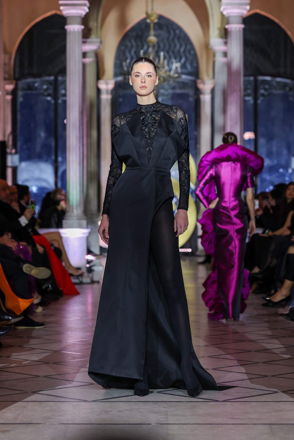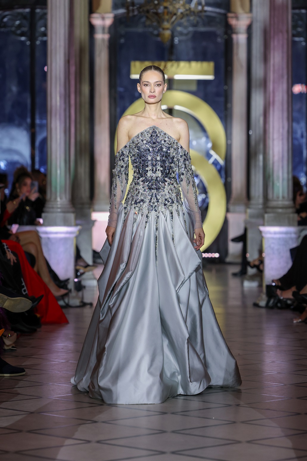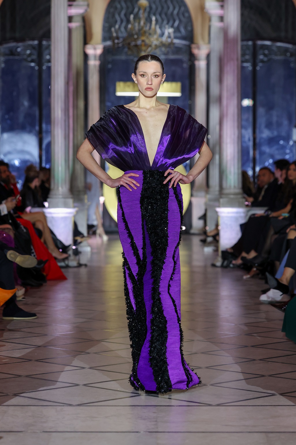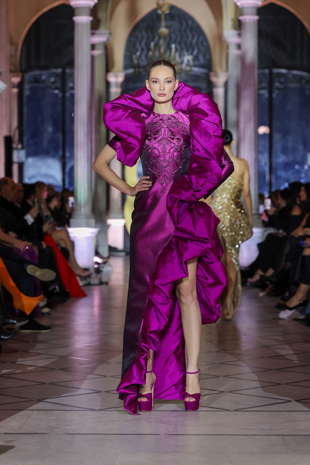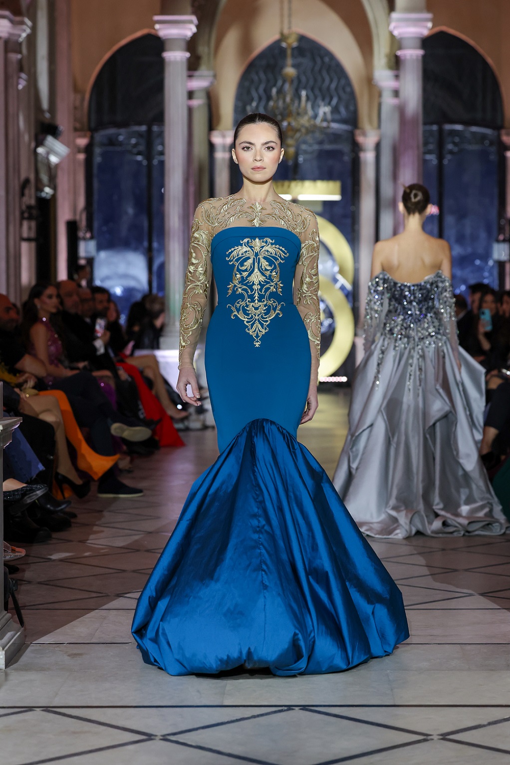 عكست تصاميم المجموعة تناغماً أخاذاً بين التقاليد الفاخرة والحداثة الجريئة، بحيث تألقت الفساتين بتطريزات الباروك الملكية، وزُيّنت بـ83 حجراً ماسياً عيار 1.5 قيراط، بلغت قيمتها نصف مليون دولار، بينما برز الـ"كورسيه" الذهبي المرصّع بالألماس قطعة استثنائية توّجت إبداع المصمّم.