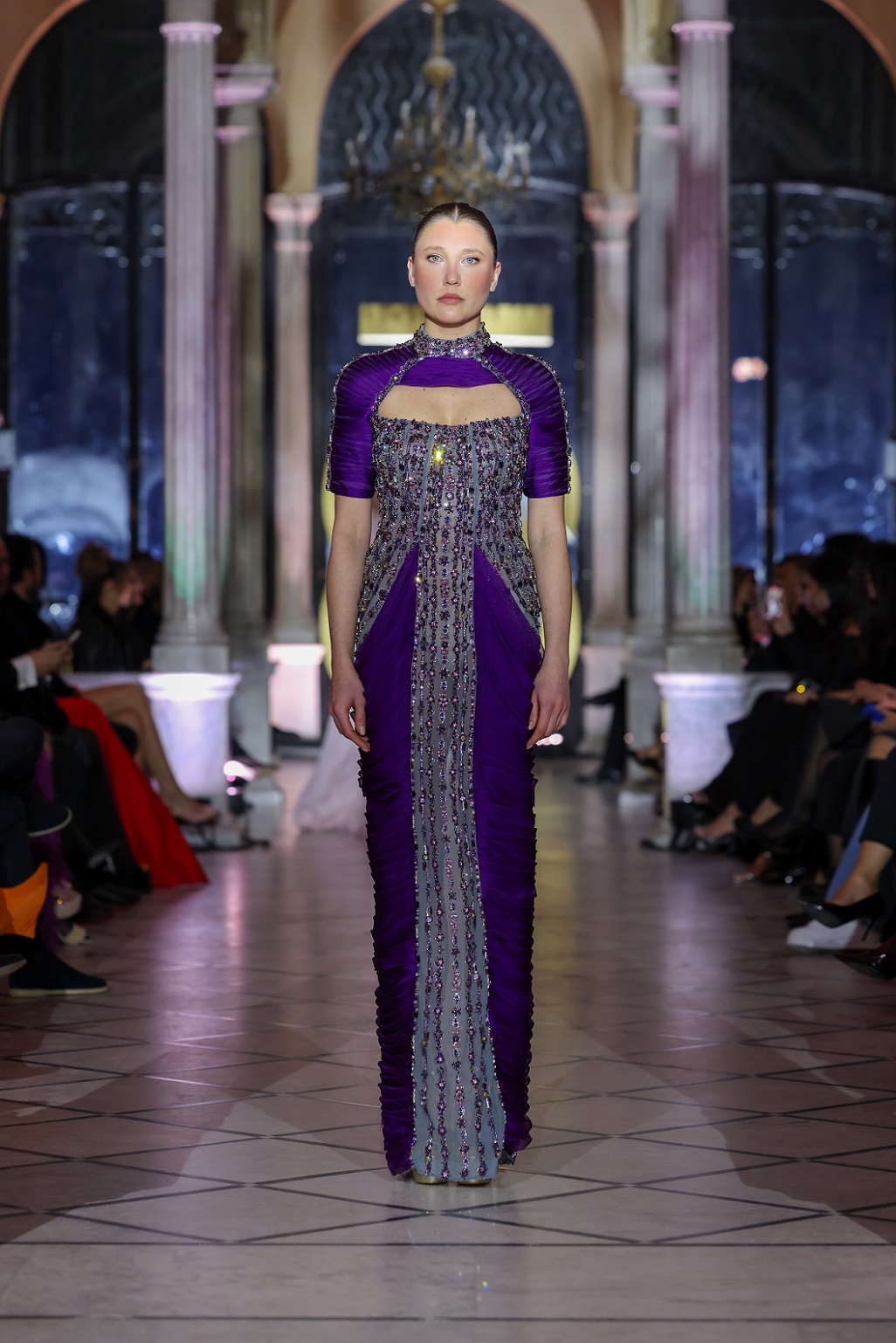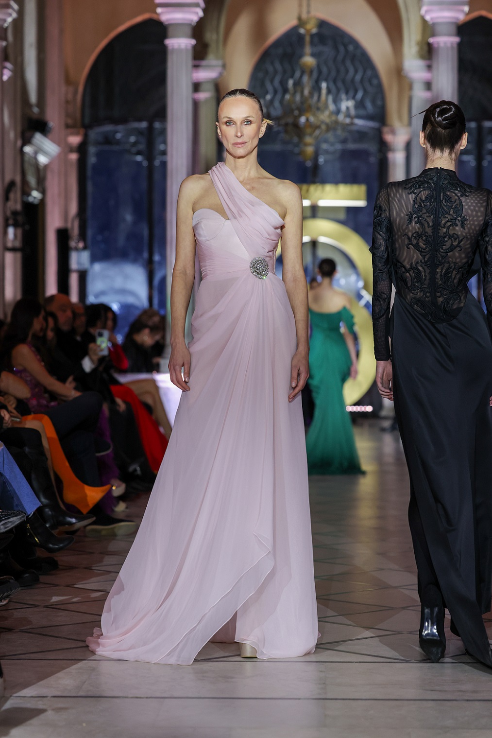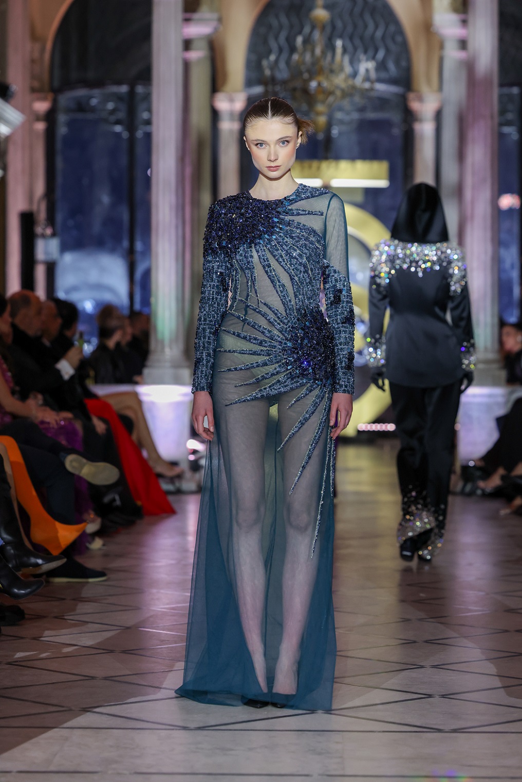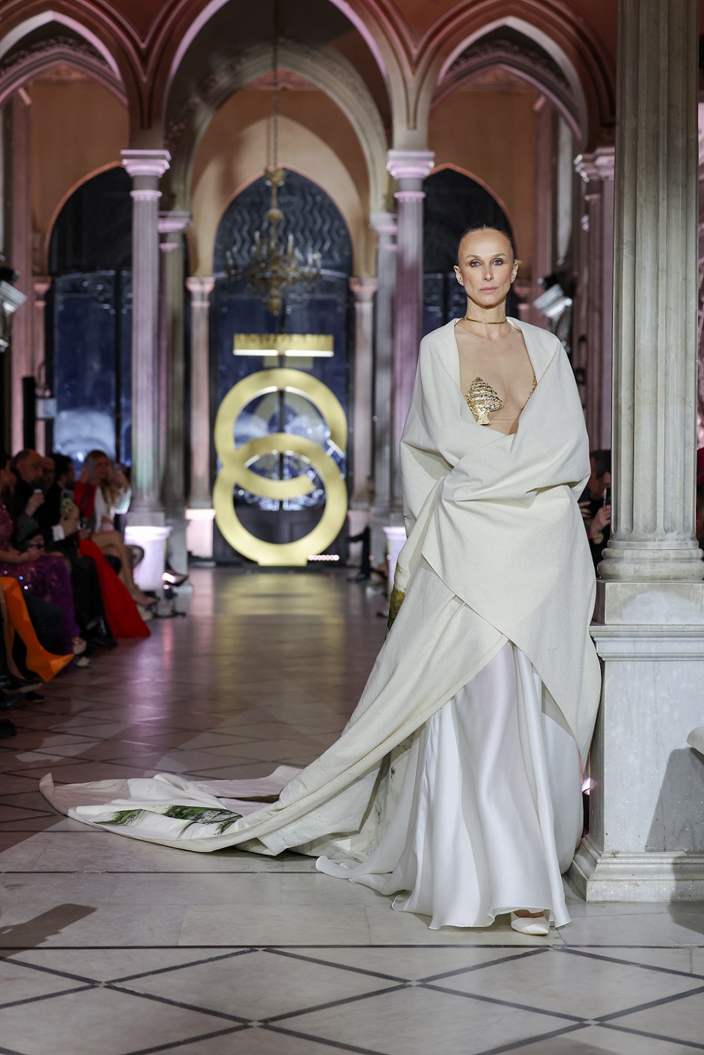 عكست تصاميم المجموعة تناغماً أخاذاً بين التقاليد الفاخرة والحداثة الجريئة، بحيث تألقت الفساتين بتطريزات الباروك الملكية، وزُيّنت بـ83 حجراً ماسياً عيار 1.5 قيراط، بلغت قيمتها نصف مليون دولار، بينما برز الـ"كورسيه" الذهبي المرصّع بالألماس قطعة استثنائية توّجت إبداع المصمّم.