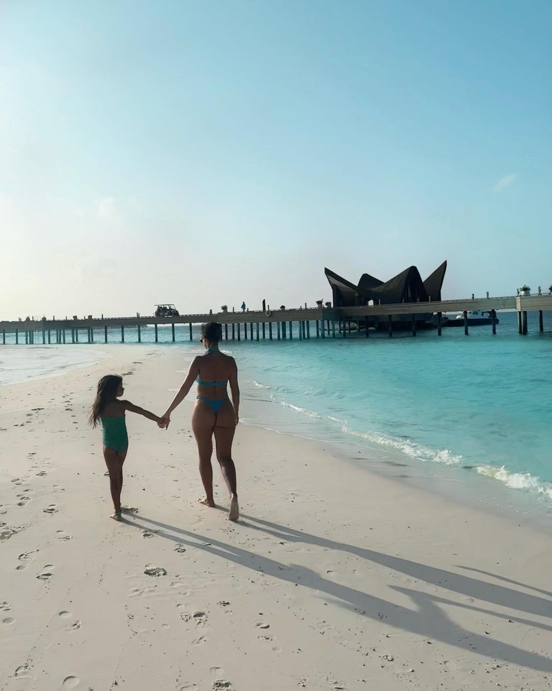 ظهرت صديقة كريستيانو رونالدو وأم ولديه على "إنستغرام" مرتديّة بيكيني مثيراً باللون القرمزي وهي تركض على شاطئ البحر في جزر المالديف، كما شاركت متابعيها في صور أخرى، حيث ظهرت بفستان أصفر يظهر منحنياتها المثيرة بوضوح من الخلف، وفي صورة أخرى ظهرت ببيكيني أزرق وهي تسير على الشاطئ مع ابنتها.