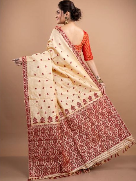 يتم إنتاج هذا الحرير حصرياً في ولاية آسام، وندرته ومحدودية إنتاجه تجعله باهظ الثمن وتحفةً فنيةً رائعة. يُصنع من ديدان القز شبه البرية التي تتغذى على أشجار السوم المحلية، وهذه الديدان معرّضة لتغير المناخ والتلوث، وتواجه تربيتها تحدياتٍ مثل استبدال غابات السوم بمزارع الشاي.