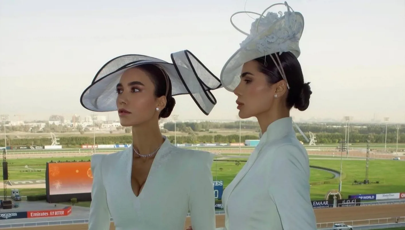 بأناقة تحاكي الأميرات… نادين وفرح عبدالعزيز تتألّقان في كأس دبي العالمي للخيول