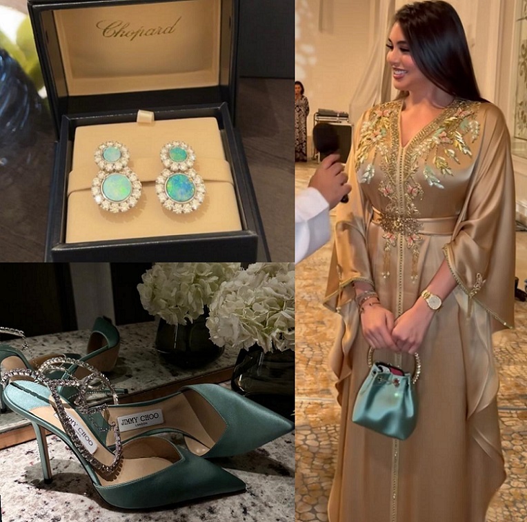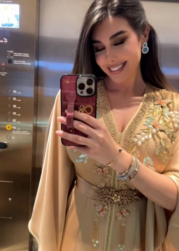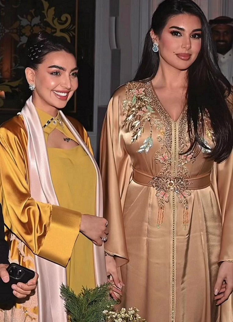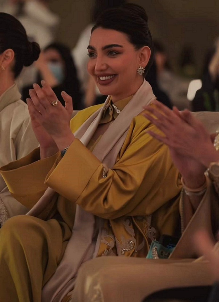 الإعلاميّة والممثلة السّعوديّة هبة الحسين ارتدت قفطاناً من الحرير الأصفر مع رداء طويل من اللون نفسه مع ياقة بتخريج أبيض مطرّز يدوياً بالرسومات والخرز الطويل البرّاق، وتزيّنت بمجوهرات مرصّعة بالماس.