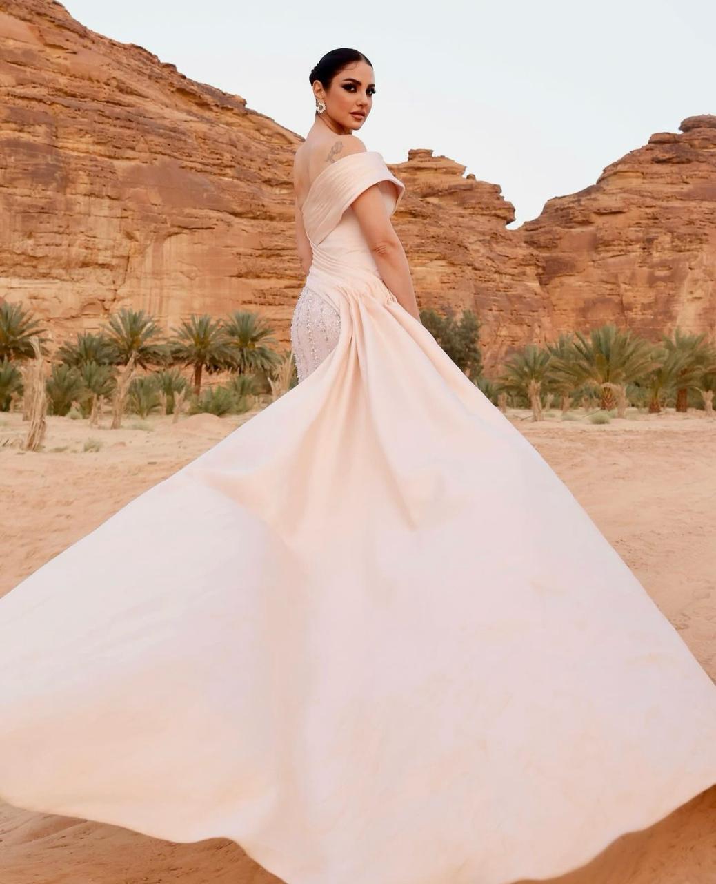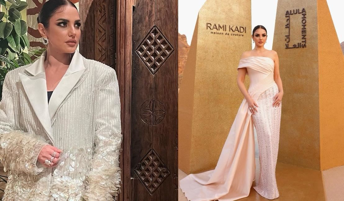 درّة زرّوق في العلا بتصميميْن مميّزيْن من رامي قاضي وجلسة تصوير خاصة (صور وفيديو)