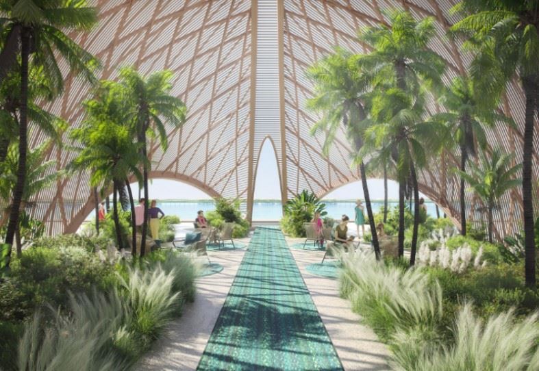 وأقيم العرض في اليوم الثاني من "أسبوع الموضة في البحر الأحمر" بنسخته الأولى، في فندق فخم كبير في جزيرة أمهات الشيخ الواقعة قبالة الساحل الغربي للسعودية، والتي لا يمكن الوصول إليها إلا عن طريق القوارب أو المركبات المائية.