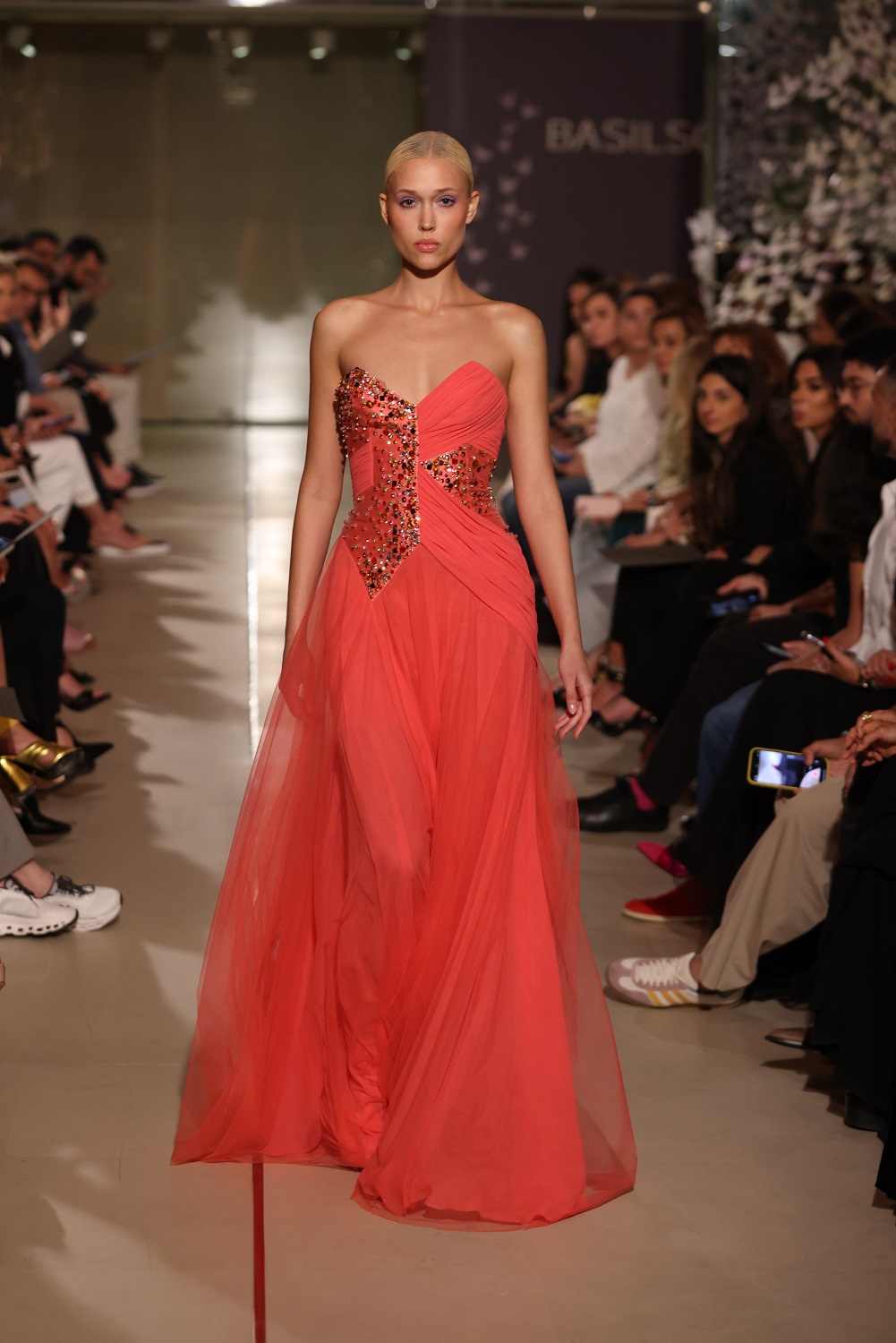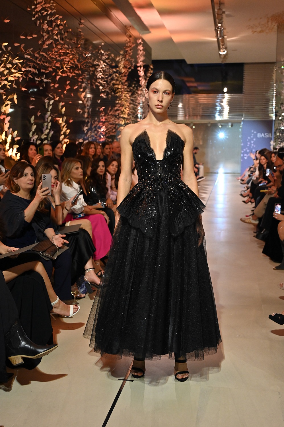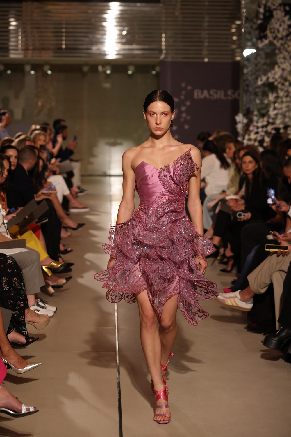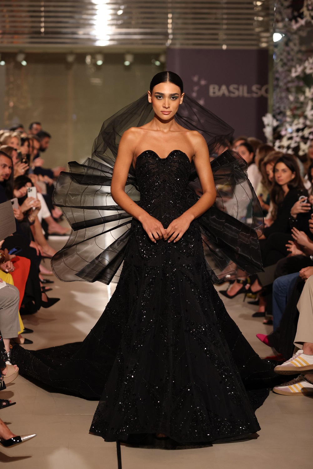 تضمّ مجموعة باسيل سودا لربيع وصيف 2025 فساتين تنوّعت قصّاتها بين الطويل والقصير بتوليفات تعبق أنوثة، ورُقياً، وأناقة من أقمشة التول، الزيبرلاين، والدانتيل، وهي محبوكة بخيوط من حرير، ومطرّزة بالخرز والترتر وأحجار السواروفسكي البرّاقة.