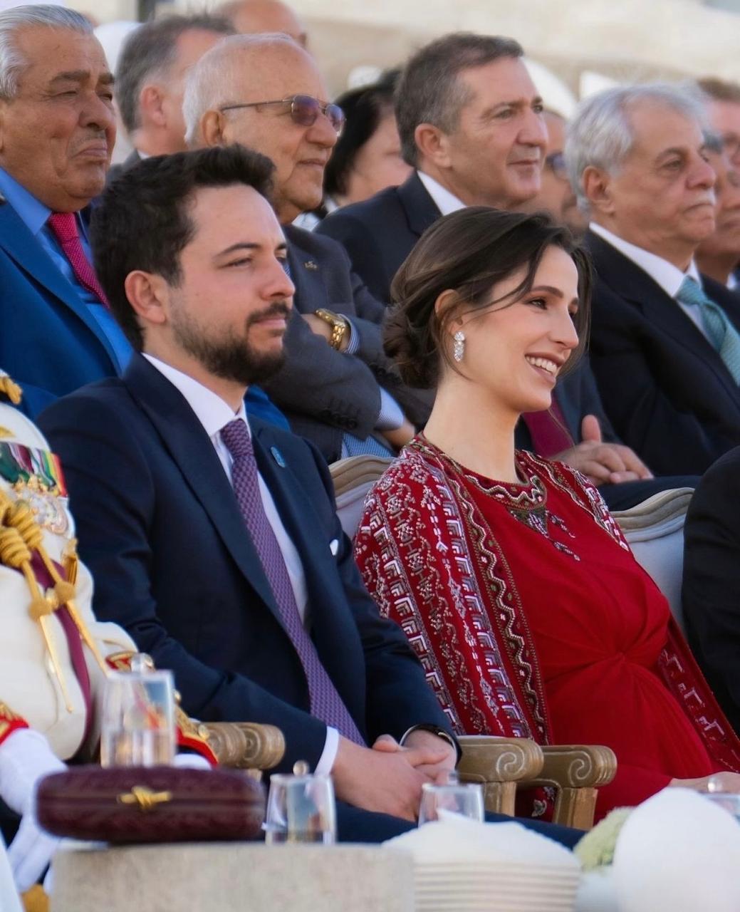 أسرت الأميرة رجوة الحسين القلوب بإطلالتها الراقية باللون الأحمر إلى جانب ولي العهد سمو الأمير الحسين بن عبدالله الثاني، في الفعالية الوطنية لمناسبة اليوبيل الفضي لتولّي جلالة الملك عبدالله الثاني سلطاته الدستوريّة