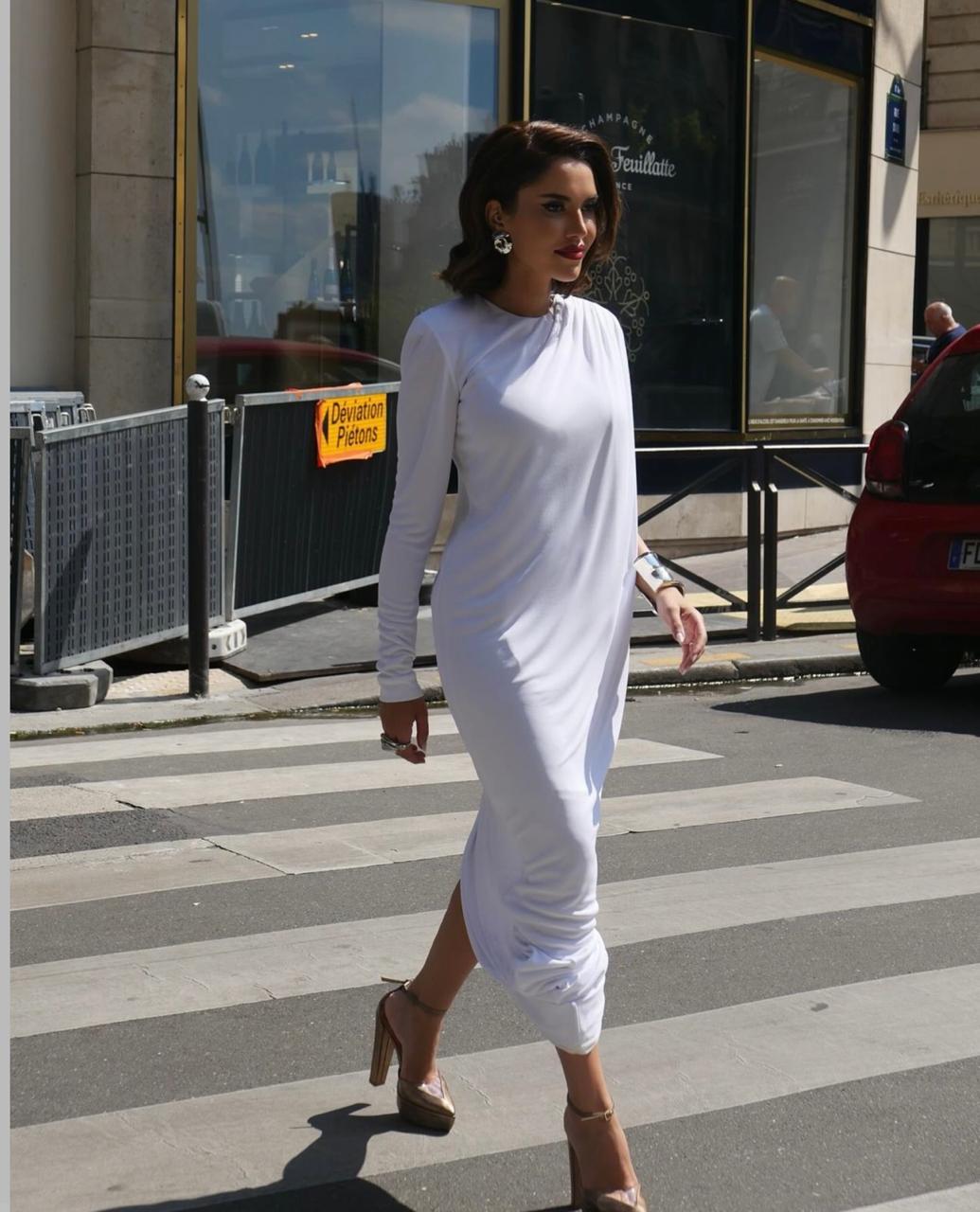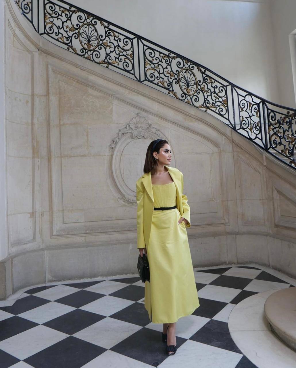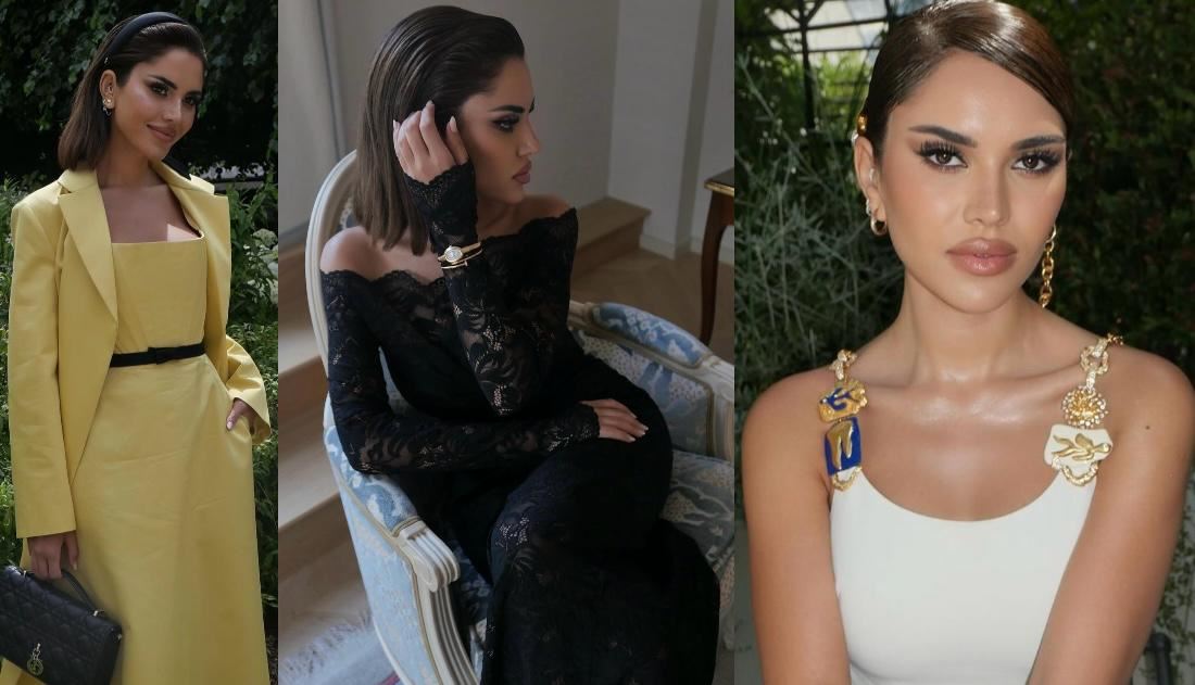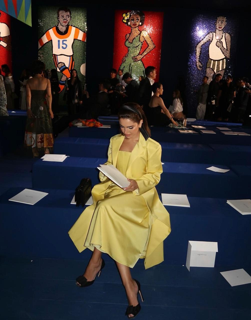 وكانت سفيرة اتحاد الموضة للخياطة الراقية قد لفتت الأنظار بأناقتها المبهرة في عرض Schiaparelli، حيث أطلّت بفستانٍ أبيض بقصّة تعانق الجسم مميّز بحمّالات مزيّنة بإكسسوارات مبتكرة، ونسّقت إطلالتها وتسريحة شعرها بمجموعة من الحلي المميّزة للدار الإيطالية، كما حملت حقيبة مخلب ذهبية من العلامة نفسها، وانتعلت كندرة مدبّبة بيضاء.