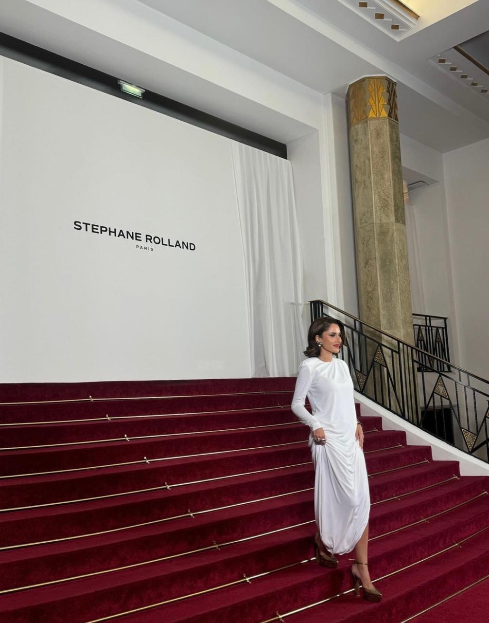 أما في عرض الفرنسي Stephane Rolland، فضلّت الفاشنيستا ورائدة الأعمال السعودية ارتداء فستان بسيط باللون الأبيض من المصمّم المذكور، بقصّة مريحة معتدلة الطول مع كمّيْن طويليْن وتفصيل الزمزمة من الجانب الأيسر، أقرنته مع كندرة باللون البرونزي-الذهبي الفاتح، وتزيّنت بمجوهرات مرصّعة بالماس.