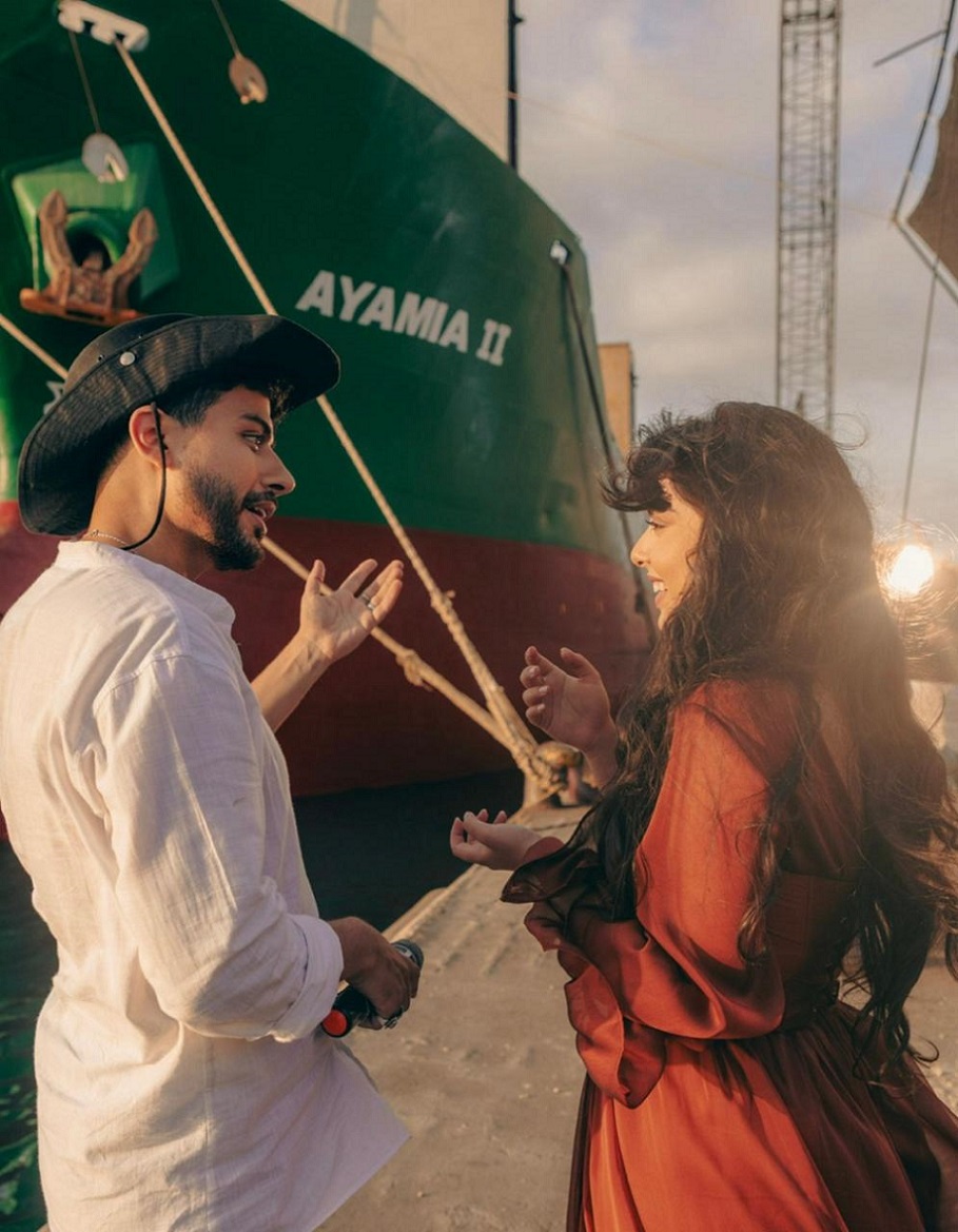 تمّ تصوير الأغنية في مناطق مختلفة من لبنان من بينها مرفأ بيروت، وارتدت إيمان خلال الفيديو أزياء صُمّمت خصوصاً لها، وهي مستوحاة من الموضة الكلاسيكيّة قام بتنسيقها خبير المظهر إبراهيم فخر الدين، وأضفى عليها إكسسوارات من التراث الفلسطيني. في المشاهد الأولى، تظهر إيمان بفستان طويل ومنسدل بلون تابلي، مميّز بكُمّيْن طويليْن ينتهيان بكشاكش، وخصر محدّد بنمط الـ"كورسيه"، وانتعلت كندرة بلون البيج الفاتح ذات كعب مسطّح، كما حملت حقيبة سفر كبيرة من الجلد البنّي.