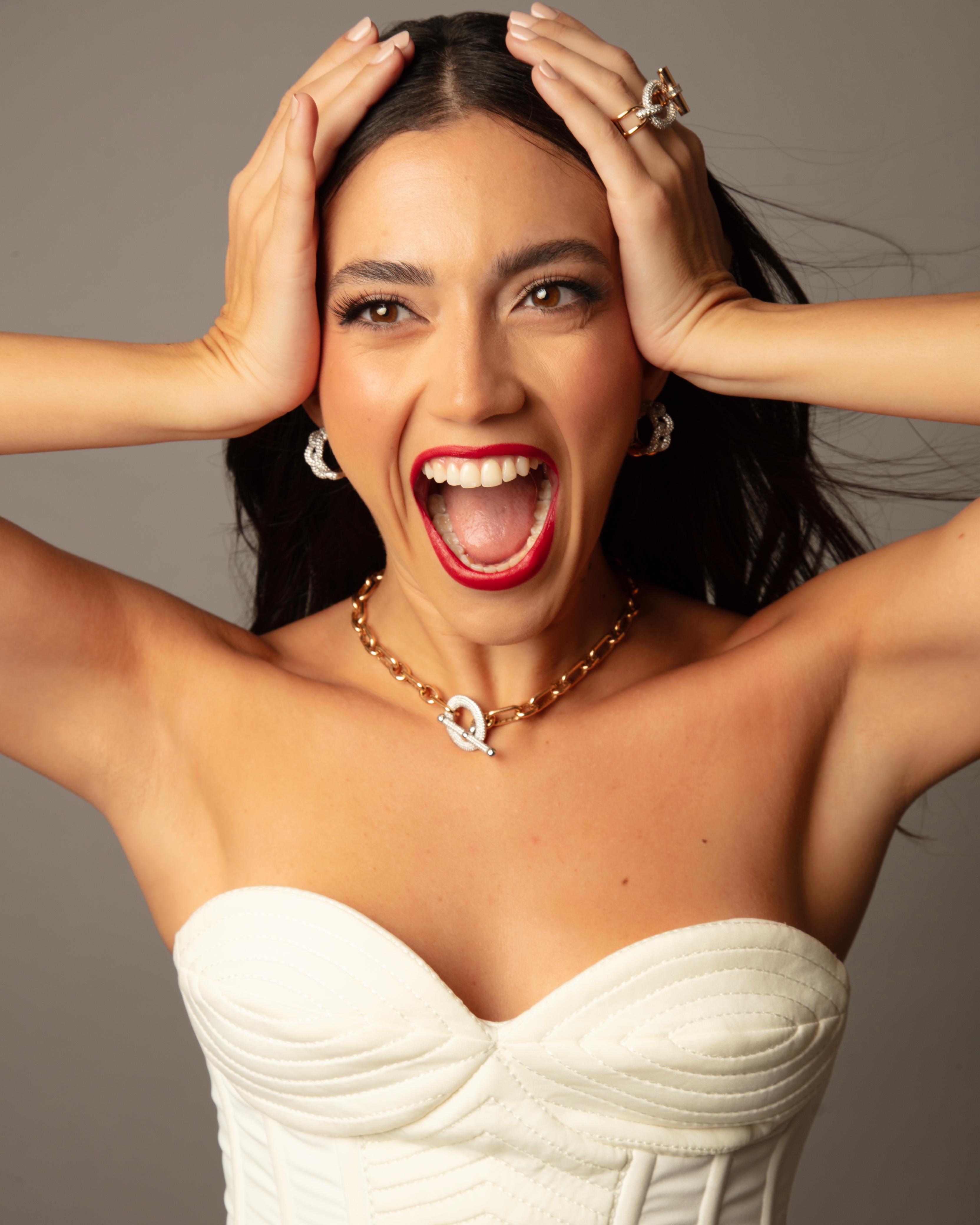 من الناحية الجماليّة، منحها مزيّن الشعر بوب @bobhairdesign من صالون أسعد، تسريحة ملساء تنسدل فوق الكتفيْن مع فرق في الوسط. أمّا مكياجها بلمسة خبيرة التجميل يارا بازون، فجاء بظلال برونزيّة متقزّحة فوق الجفون مع كحل مائي أسود يحدّد العينيْن، وماسكارا سوداء تصقل الرموش، كما نحتت ملامح ستيفاني بلمسات من البودرة البرونزيّة الدافئة، وظلّلت عظمة الخدّيْن بالهايلايتر، وغلّفت الشفتيْن بلون أحمر قشدي نابض بعد أن حدّدتهما بقلم كونتور من اللون نفسه.