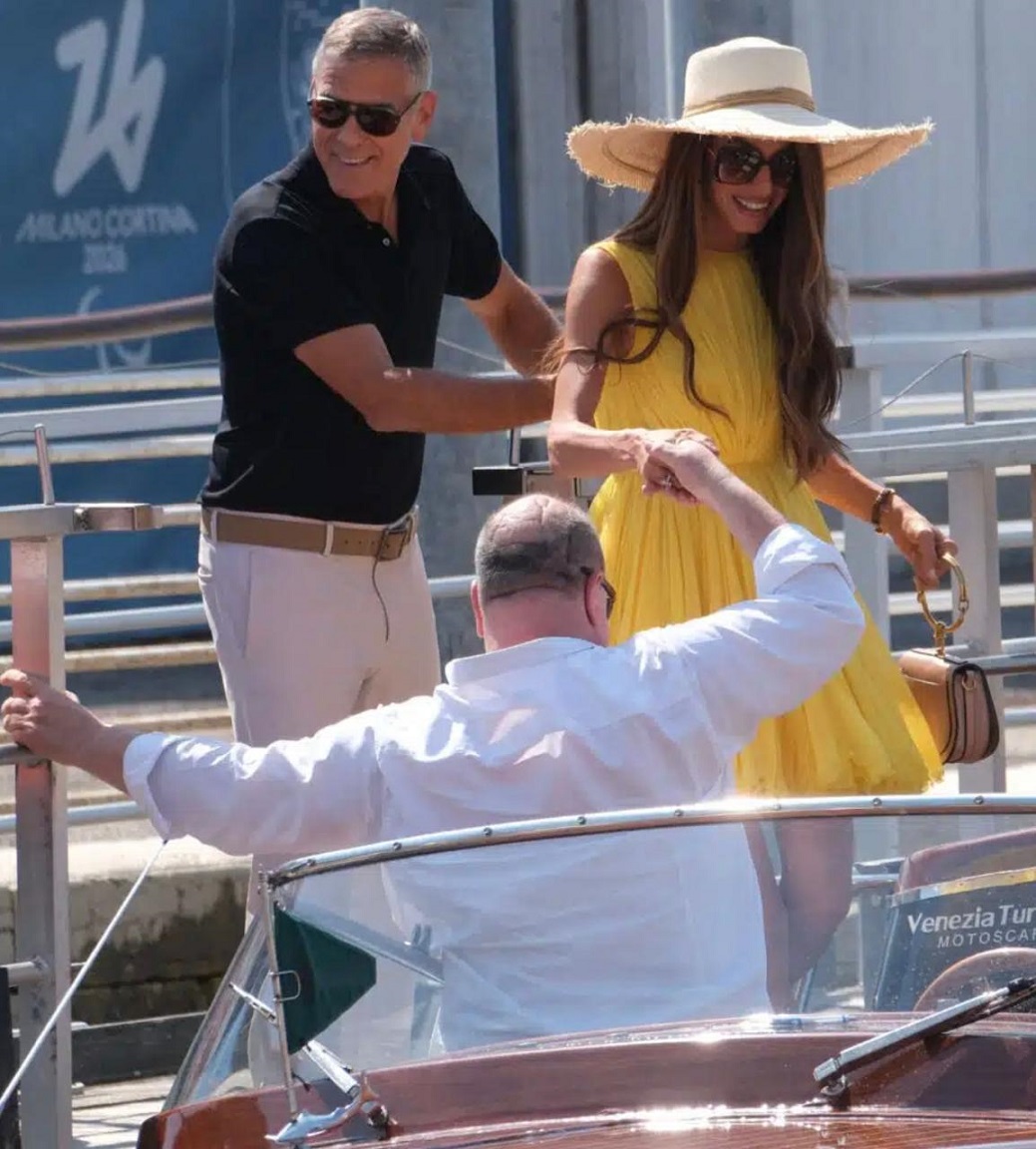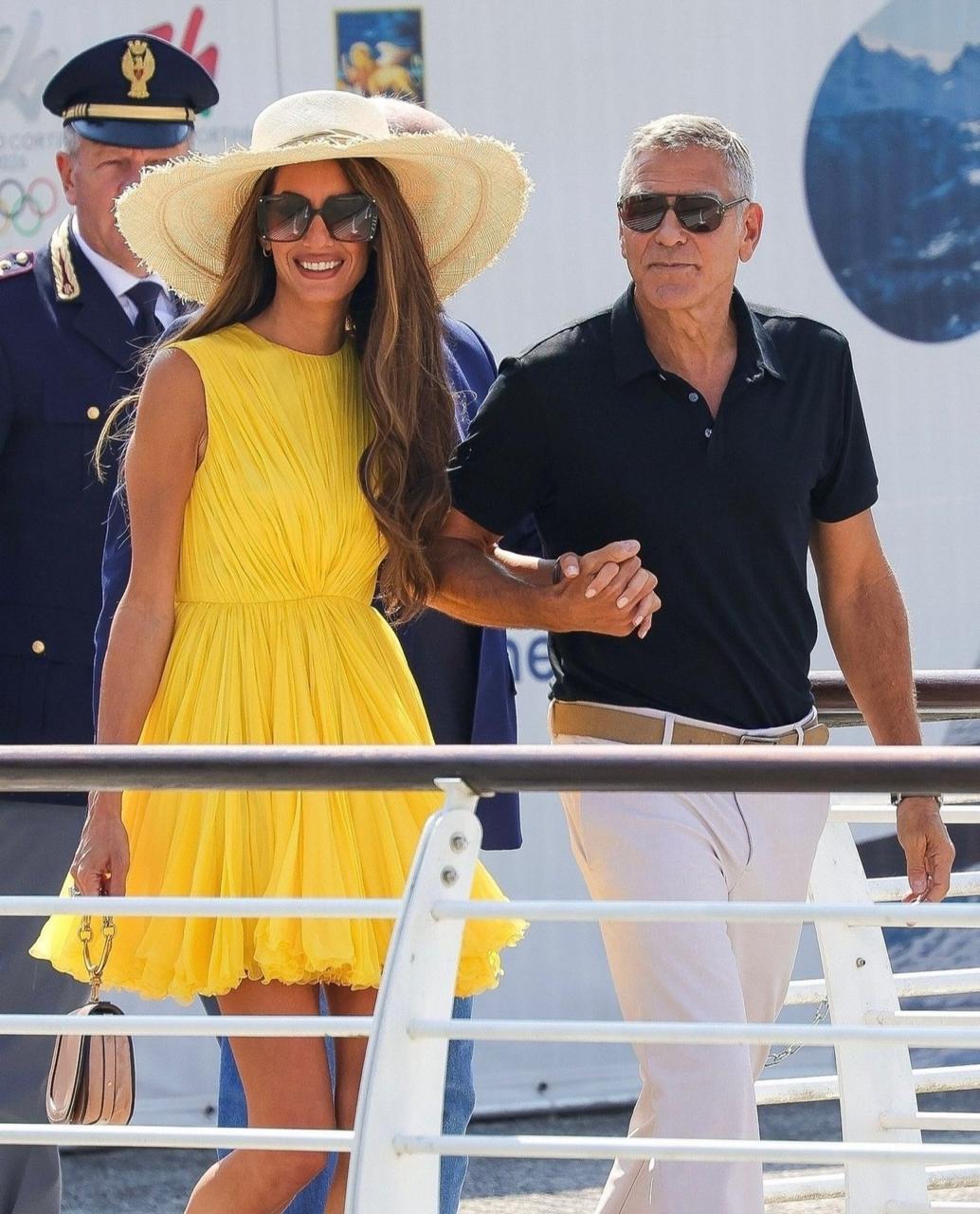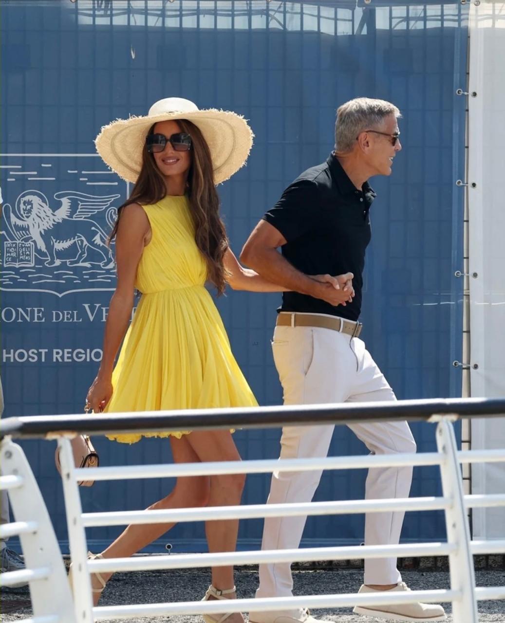 ما إن غادرت أنجلينا جولي البندقيّة حتى وصل الثنائي جورج وأمل كلوني لحضور العرض الافتتاحي لفيلم Wolfs، الذي سيُعرض يوم الأحد، ويجمع بين الكوميديا والتشويق، ويؤدي فيه المخرج والممثل الأميركي من أصول إيطاليّة، دور البطولة إلى جانب صديقه النجم براد بيت (طليق أنجلينا). وقد بدت أمل ملفتة بإطلالتها المشرقة باللون الأصفر الحيوي، الذي كان من أكثر الألوان رواجاً هذا الصيف.