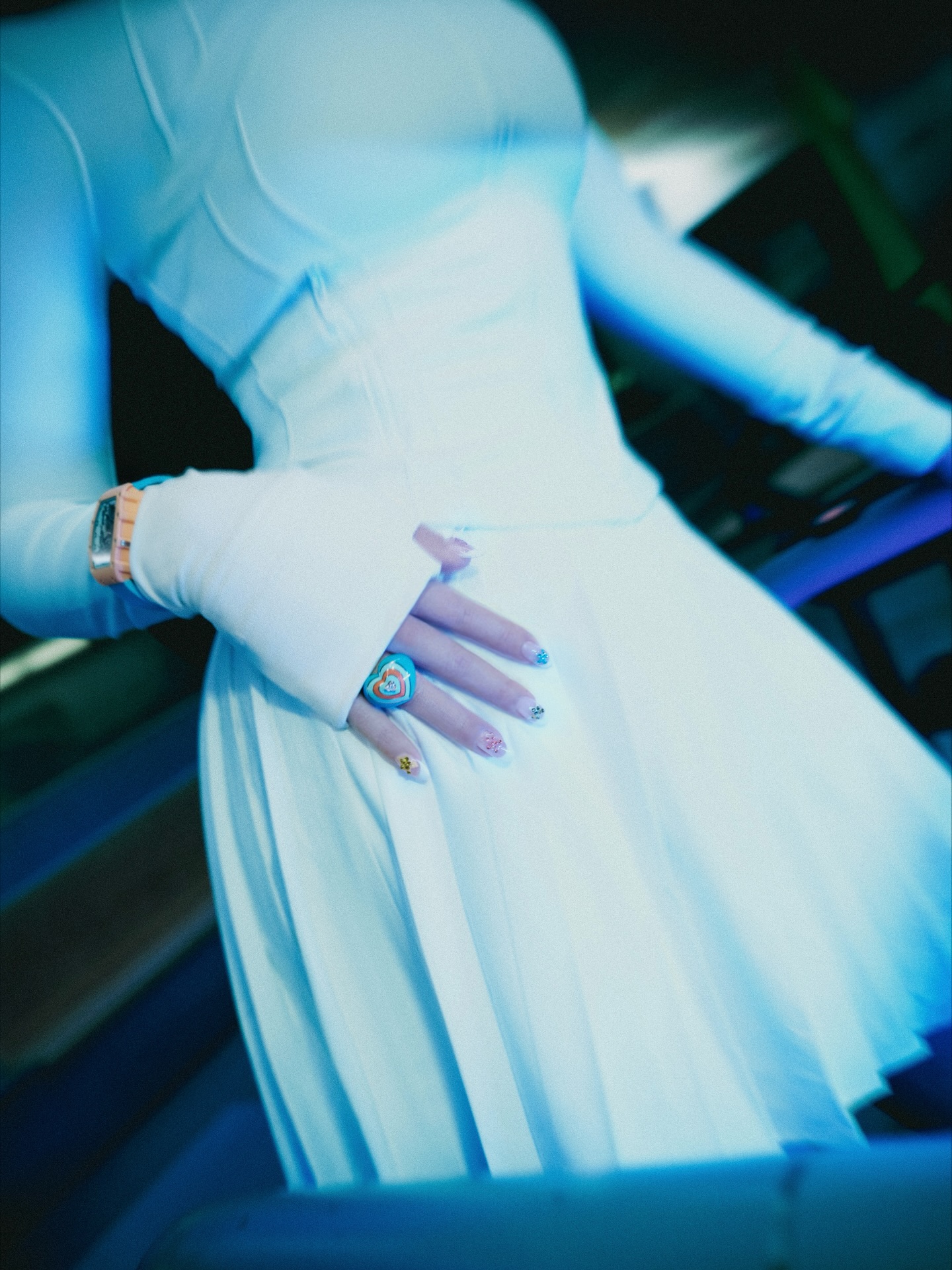 أما الإطلالة الثالثة، فهي لوحة من الأنوثة الخالصة، تختصر فلسفتها في الموضة: