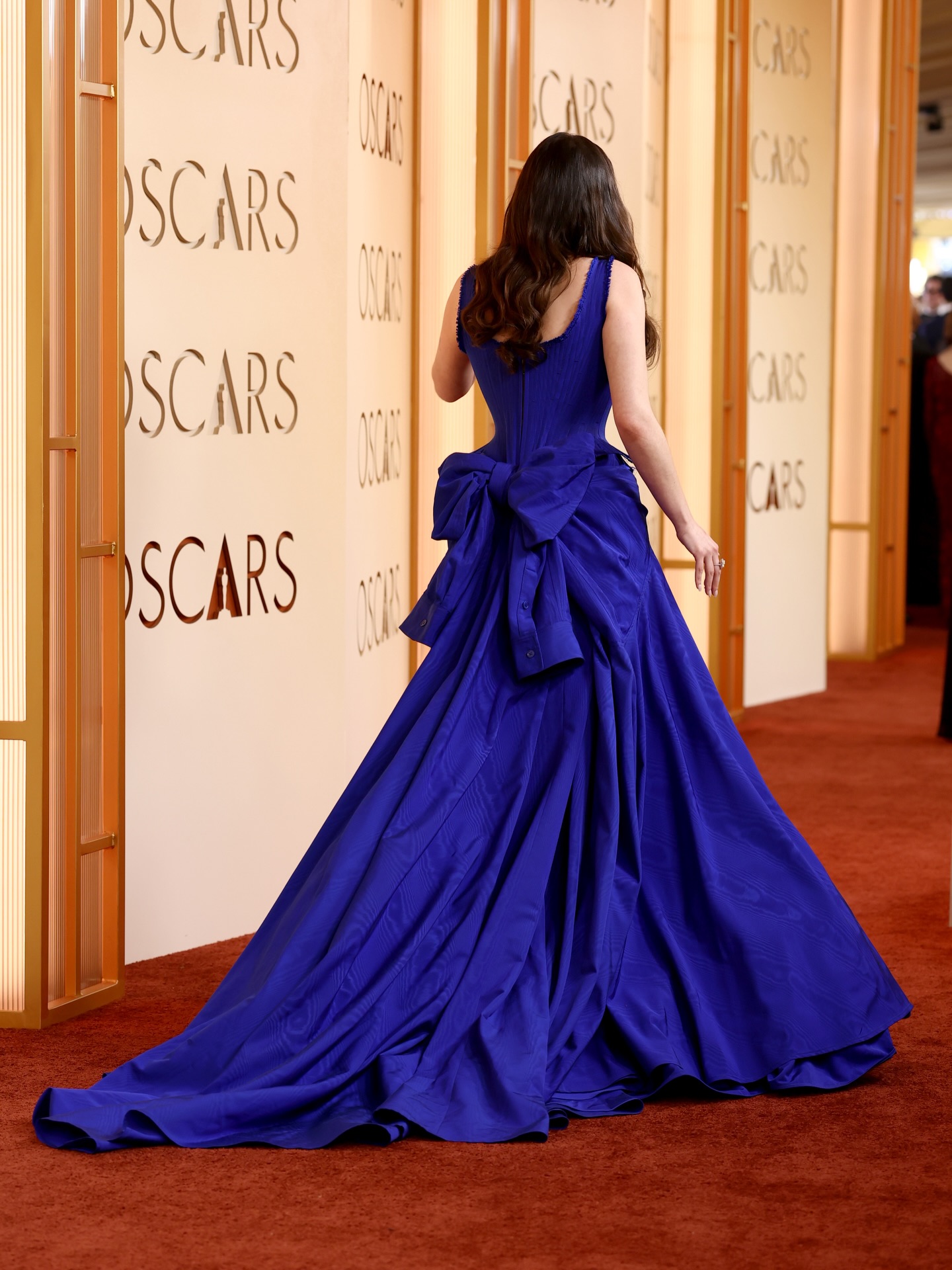 آن هاثاواي لفتت الأنظار بفستان أسود من دون حمّالات، وبنمط حورية البحر مع قطارٍ طويل من مجموعة الخياطة الراقية لربيع وصيف 2026 "فالنتينو" (Valentino)، زيّنته تطريزات الأزهار الورديّة الزاهية والخرز البرّاق. وأكملت بطلة فيلم (The Devil Wears Prada) إطلالتها بمجوهراتٍ فاخرة مرصّعةٍ بالألماس من "بولغري" (BVLGARI)، وانتعلت صندالاً أسود.