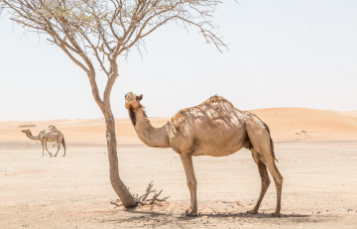 الجِمال: يمكنها البقاء 15 يوماً من دون ماء لأنها تخزن الدهون في سنامها، ويمكنها استخدامها مصدراً للطاقة عندما يكون الطعام والماء نادرين.