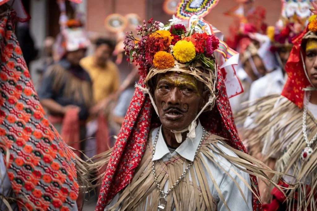 من نيبال، يأتي احتفال "غاي جاترا"، الذي يجمع بين الفرح والمأساة. يُعتبر هذا الاحتفال تجسيداً للفرح رغم جذوره الحزينة، حيث يُقاد أفراد العائلة الذين فقدوا بقرة في الموكب، كأنها تشير إلى أن الأرواح ستصل إلى الجنة. يتخلّل الاحتفال عروضاً ملوّنة ورقصات وموسيقى، حيث يشعر الجميع بالراحة والسرور في ذكرى الأحباء.