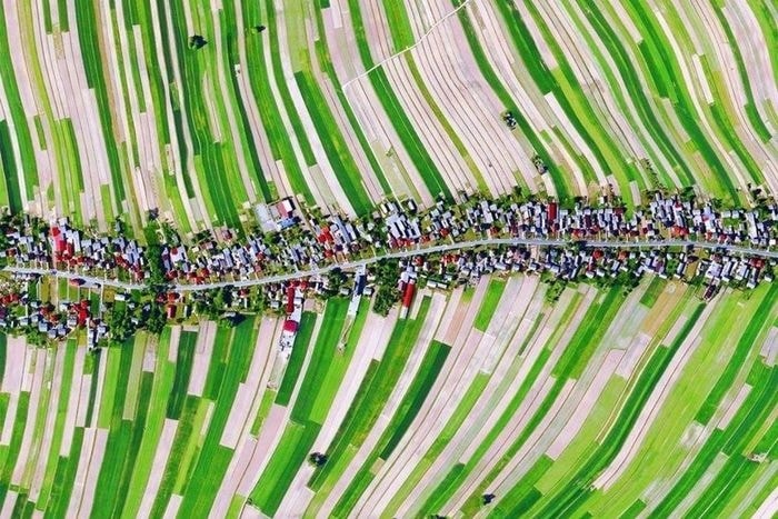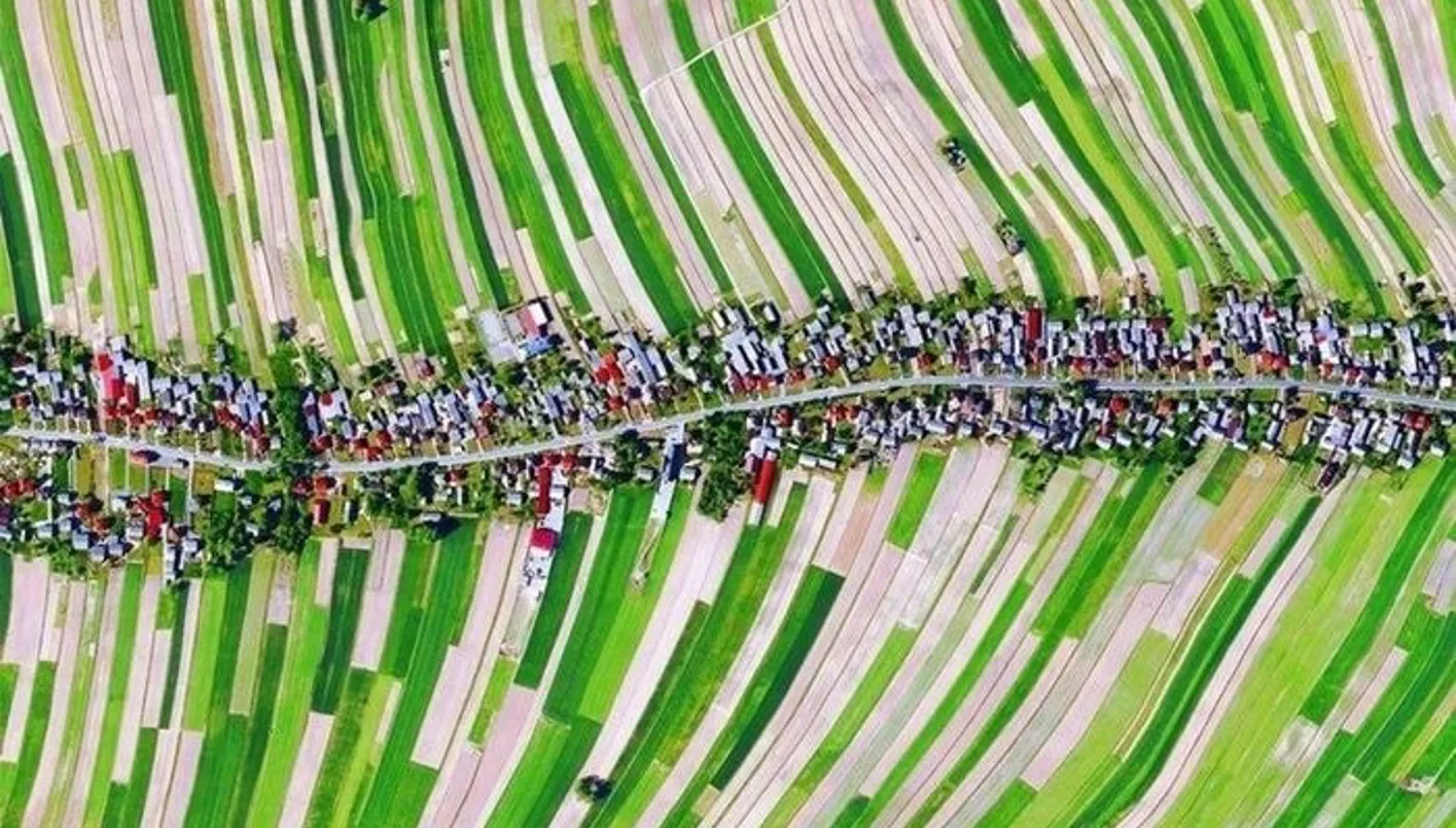 ما يجعل سولوشوا أكثر سحراً هو التناغم البصري الذي يرسمه امتداد البيوت على جانبي الطريق الرئيسي، حيث تتصل كل وحدة سكنية بقطعة أرض زراعية طويلة تمتد إلى الخلف، مشكّلةً لوحة طبيعية مبهرة من الحقول والحدائق. ومن الأعلى، تبدو القرية نسيجاً ملوّناً تتغير ألوانه مع تغير المحاصيل، فتارةً تزيّنه خضرة الحبوب، وتارةً أخرى يكتسي بلون الذهب مع ازدهار بذور اللفت.