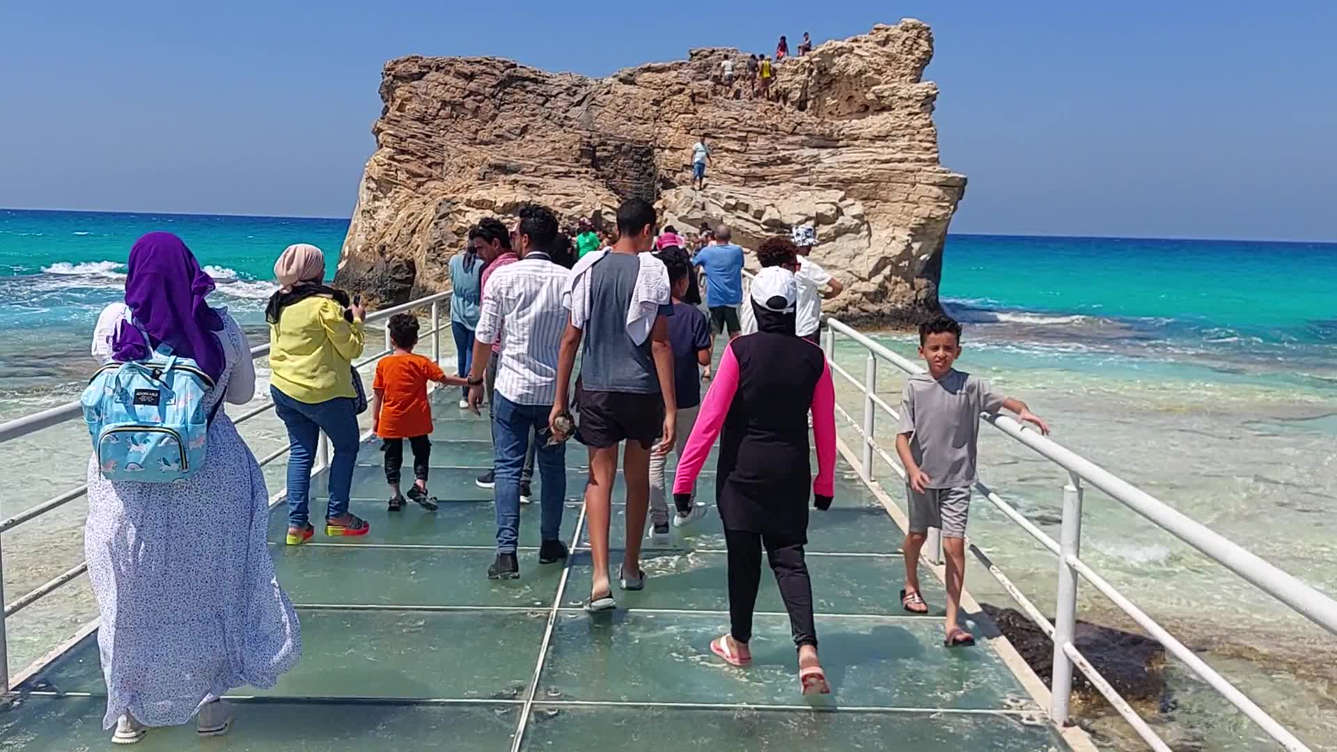 زائرون يتوجهون نحو "حمام كليوباترا" عبر ممشى زجاجي أنشئ حديثاً.