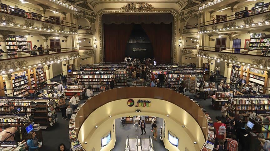 داخل مبنى عمره أكثر من 100 عام، تقع المكتبة المعروفة بمتجر الكتب الكبير، في شارع تجاري صاخب في حي ريكوليتا العصري في العاصمة بوينس آيرس، في الأرجنتين، حيث يمكن اللجوء إلى واحة هادئة من الكتب في بيئة جمالية هادئة. تمّ تصميم المبنى من قِبل المهندسين المعماريين (الثنائي بيرو وتوريس)، ومرّ المبنى بالعديد من المراحل، إذ تمّ افتتاحه كمسرح عام 1919، استضاف عروضاً لا تُنسى لأساطين فنون التانغو، ثم تحوّل إلى سينما فاخرة. وفي عام 2000 تمّ إصلاح المكتبة من قِبل المهندس المعماري الإسباني فرناندو مانزون، الذي حوّلها إلى مكتبة تابعة لشركة "أتينيو" الكبرى، الذي أبقى على السقف وستائر خشبة المسرح وجميع التفاصيل الأخرى للتصميم البديع، لكنه أضاف أماكن دافئة للقراءة مع أرائك مريحة. تتألّف من قبو وطوابق عدة في دوائر وأرفف تحتوي على 120 ألف كتاب، في أحد الطوابق يوجد معرض مع لوحات، وفي القاعات السفلية، توجد مكتبة خاصة تُسمّى (أتينيو جونيور)، مخصّصة للأطفال الصغار.
