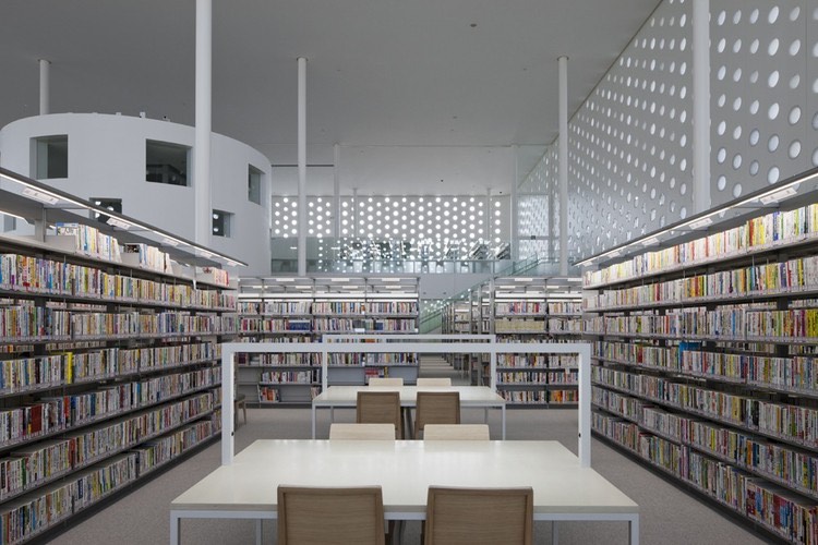 اكتمل بناء المكتبة عام 2011، صمّمها مهندسان يابانيان، وكان الجديد في تصميمها أنّ هناك حوالى 6 آلاف ثقب زجاجي يخترق جدرانها البيضاء، وتسمح لضوء النهار بالنفاذ إلى الداخل، فتبدو وكأنّها شموس، كما تسمح لأضوائها الكهربائية الليلية بالنفاذ إلى الخارج، وكأنّها أقمار. تتكوّن المكتبة من ثلاثة طوابق، وتخلق جواً مثالياً للقراءة والاستذكار، ويزورها الأطفال والكبار، وتوفّر أكشاكاً زجاجية لاستخدام الهاتف الجوّال، كما تخصّص أماكن لقراءة الصحف، وهي العادة التي لم يتخلّ عنها اليابانيون حتى اليوم.
