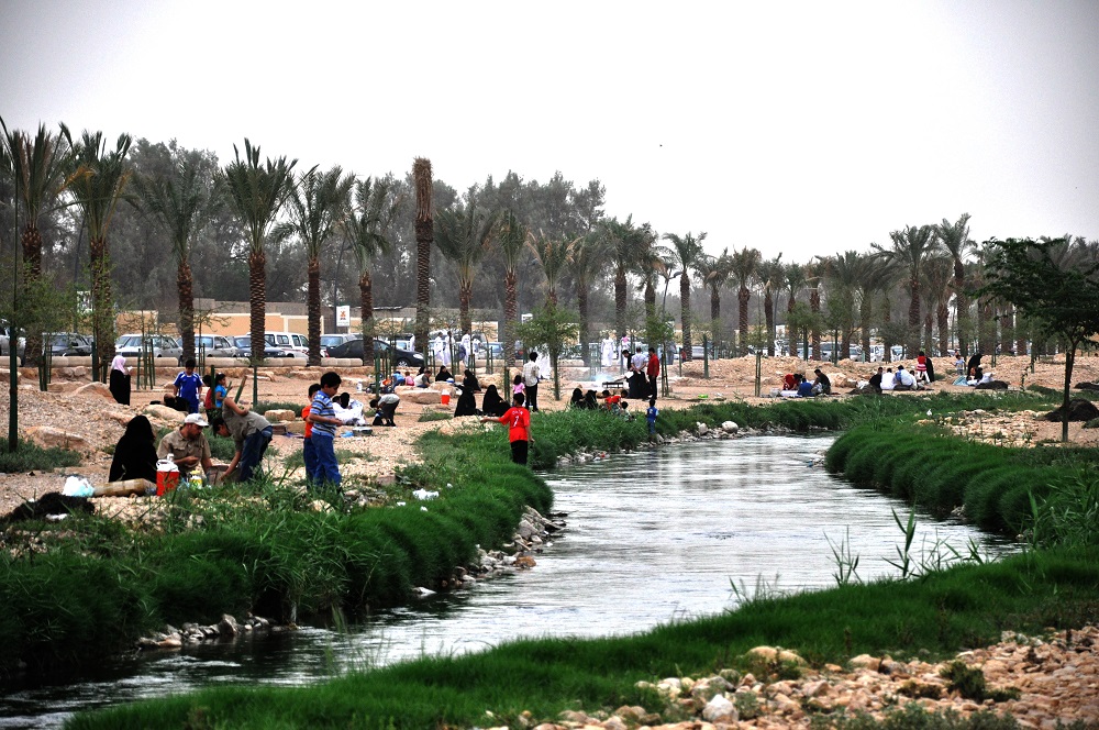 أما وادي حنيفة، أهم الوديان المائية في المملكة وأشهرها، فقد صار وجهة شعبية لعائلات الرياض، تستمتع بنزهات استرخائية في إحدى حدائقه: حديقة سد العلب، وحديقة سد وادي حنيفة، وحديقة سد الحجر، وحديقة بحيرة المصانع، وحديقة بحيرة الجازع، وكلها مجهّزة بمقاعد وجلسات، وبممرات للمشاة، ومناطق وقوف السيارات. انتقينا مكاناً وأقمنا وليمة شواء لأصدقائنا هناك، رافقونا في سياحتنا الصيفية هذه، ثم مشينا طوال المسير الطويل في ممر يمتد 47 كيلومترًا، وفي مسار صخري ممهّد يمتد 7.4 كيلومترات، يدور حول التضاريس الصخرية والمناطق الخضراء والجداول. كما ركبنا الدراجات الهوائية وتسابقنا في مسارات خاصة. عند العصر، كان ركوب القوارب في البحيرة بقلب حديقة وادي حنيفة متعةً ما بعدها متعة، وما غادرنا إلّا بعدما انتقى كل منا فرساً أصيلة من إسطبلات الوادي فخبّت بنا رويداً رويداً ساعةً من الزمن.