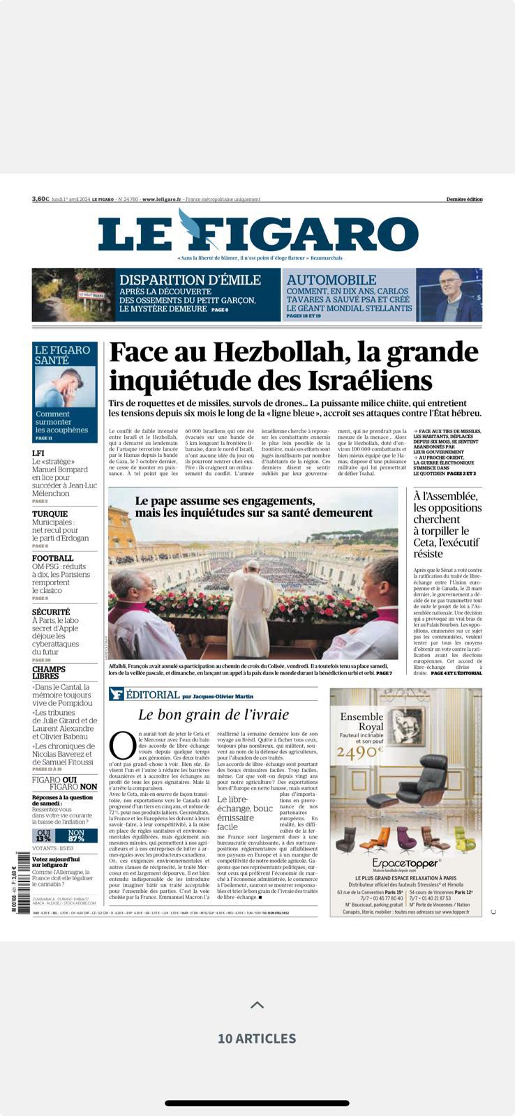 أكدت صحيفة "لوفيغارو" الفرنسية في مانشيت عددها الإثنين أن هناك قلقاً إسرائيلياً كبيراً من "حزب الله".