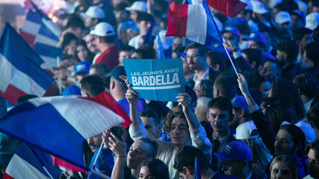 متظاهرون في باريس يحتفلون بفوز اليمين الفرنسي المتطرف في الانتخابات الأوروبية