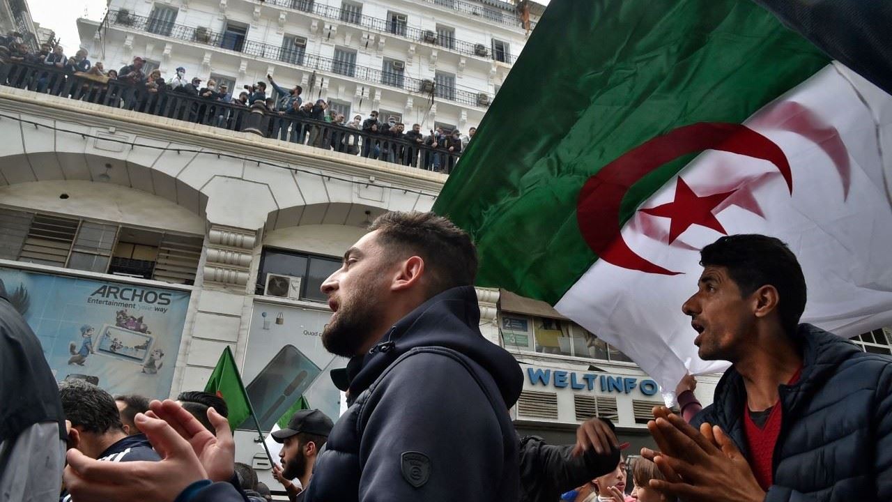 جزائريون يتظاهرون في العاصمة الجزائر مطالبين فرنسا بالاعتذار عن جرائمها في أيام الانتداب، 19 آذار (مارس) 2021 (أ ف ب)