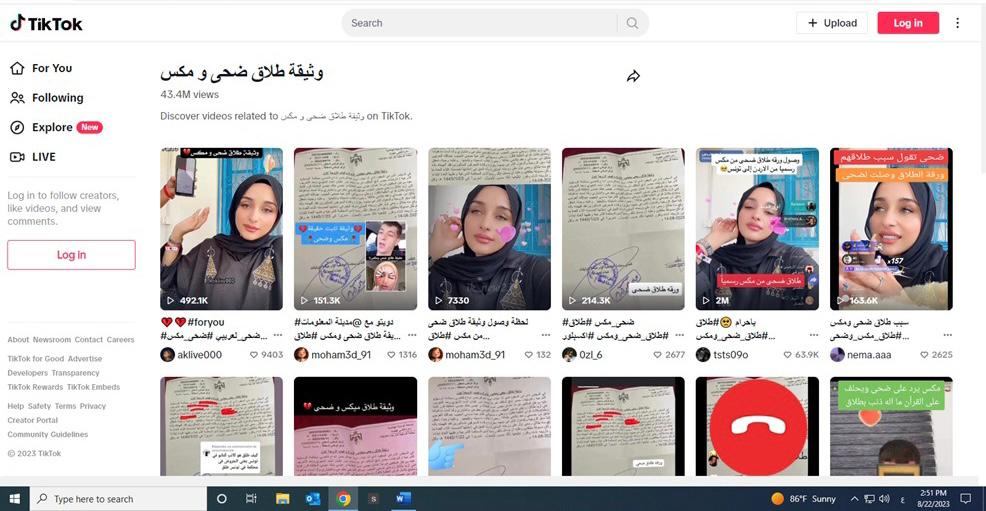 وعلّق العديد من روّاد صفحات التواصل الاجتماعي على محتوى وثيقة الطلاق، معتبرين أنّها "مهينة للمرأة التونسية". وكتبت سيدة قائلة: "انفصال مشاهير "تيك توك" ضحى وميكس... وثيقة الطلاق أثارت فضولي… والإشكال في شكل الطلاق. هذه الوثيقة للأسف فيها إذلال وعبودية للمرأة… وتدرّس من ناحية قانونية بحتة، وفي مقاربة بين قضاء الأسرة في تونس وبقية الدول العربية".