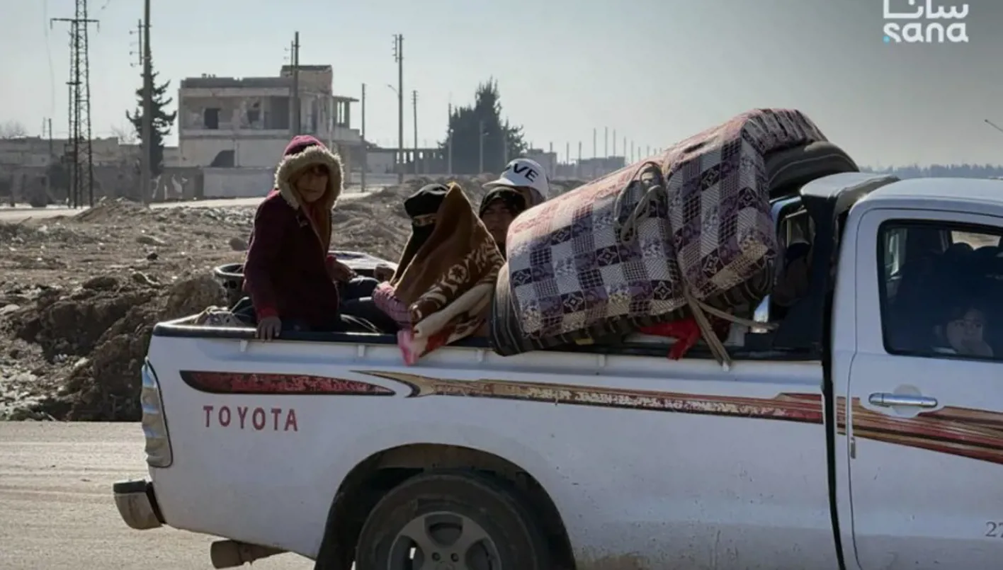 Residents of Deir Hafer and Maskanah take dangerous routes after the SDF blocked their exit through the humanitarian corridor (SANA).