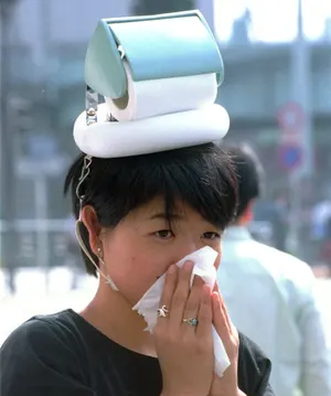 اخترع اليابانيون قبعة تشبه العش، ولكن فيها بكرة مناديل تسهل عليك الاحتفاظ بالمناديل أينما كنت وسحبها عند الحاجة، خاصةً عند الإصابة بالبرد والزكام، حيث لا يمكن الاستغناء عن المناديل الورقية.