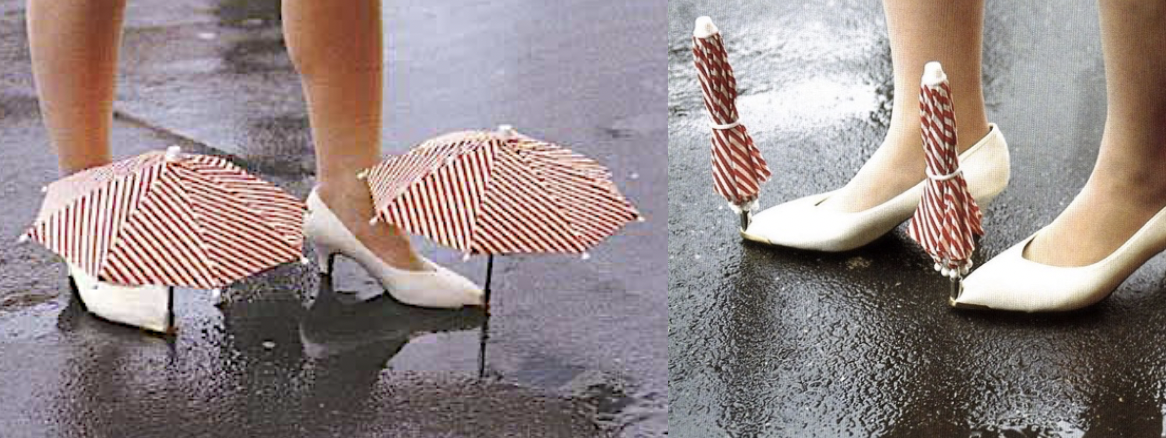 ولأن الكثير من الأخذية تتلف حين تعرضها للمياه، تم اختراع مظلة صغيرة لها تثبت في بداية كل حذاء، فيمنع وصول المطر لها خلال الشتاء.