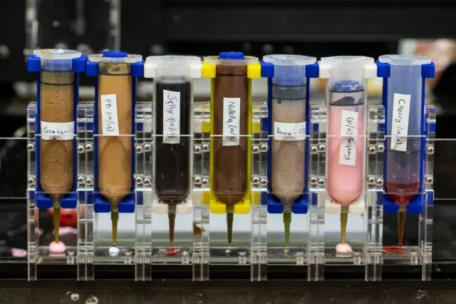 طوّر علماء في كولومبيا آلة طباعة ثلاثيّة الأبعاد. وجرّب الفريق البحثيّ عدداً من التصميمات المختلفة لحلوى "الشيز كيك"، مكوّنة من 7 مواد رئيسيّة: وهي بسكويت غراهام كراكر، زبدة الفول السودانيّ، نوتيلا، هريس الموز، مربّى الفراولة، رذاذ الكرز وكريمة الحشو.